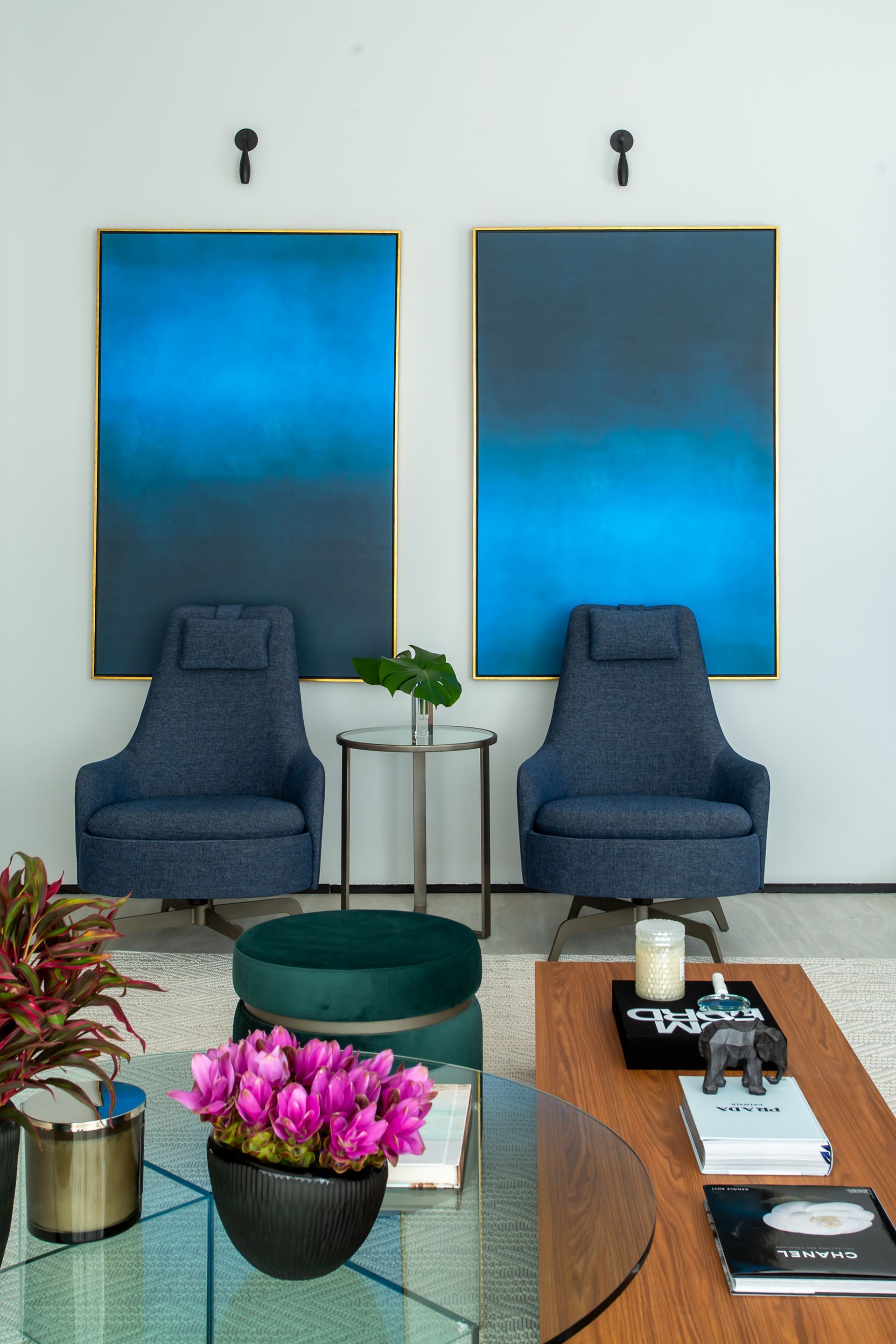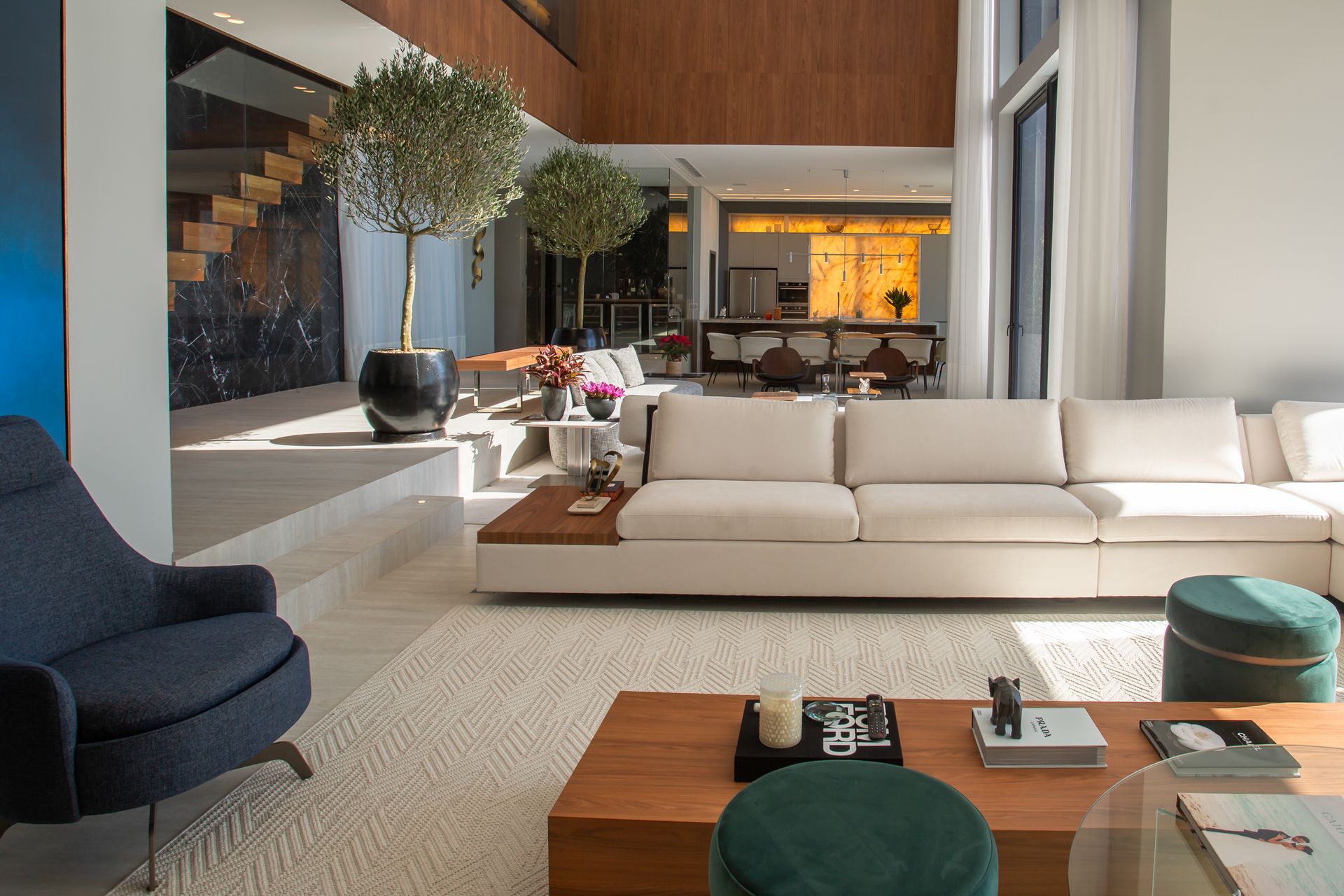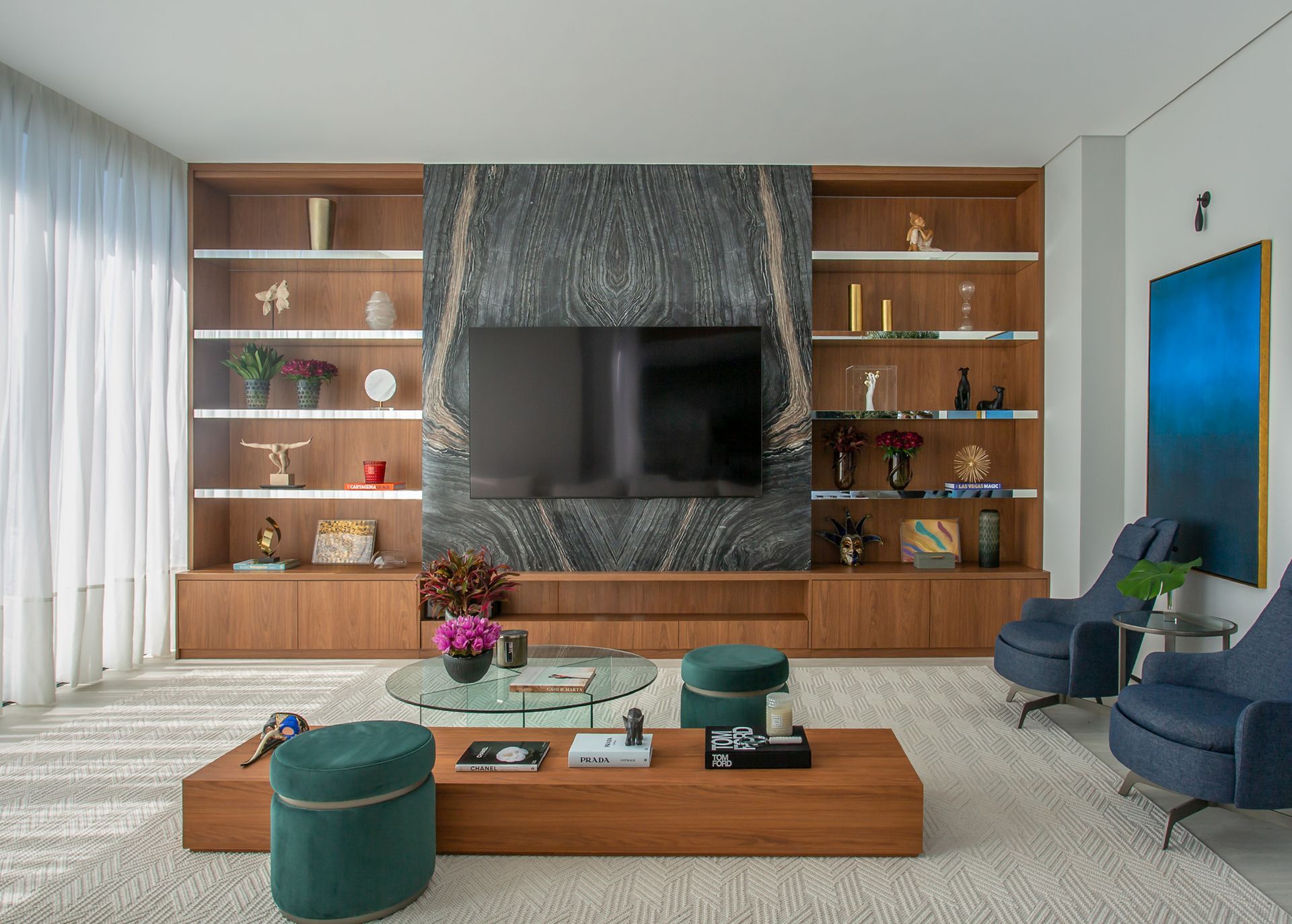 assinados pelo Studio Feeling, estruturam as áreas de estar, acompanhados pela