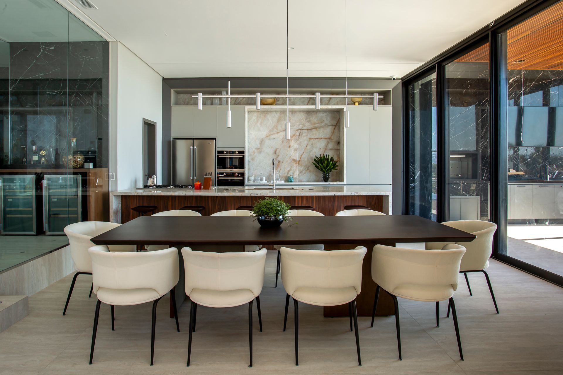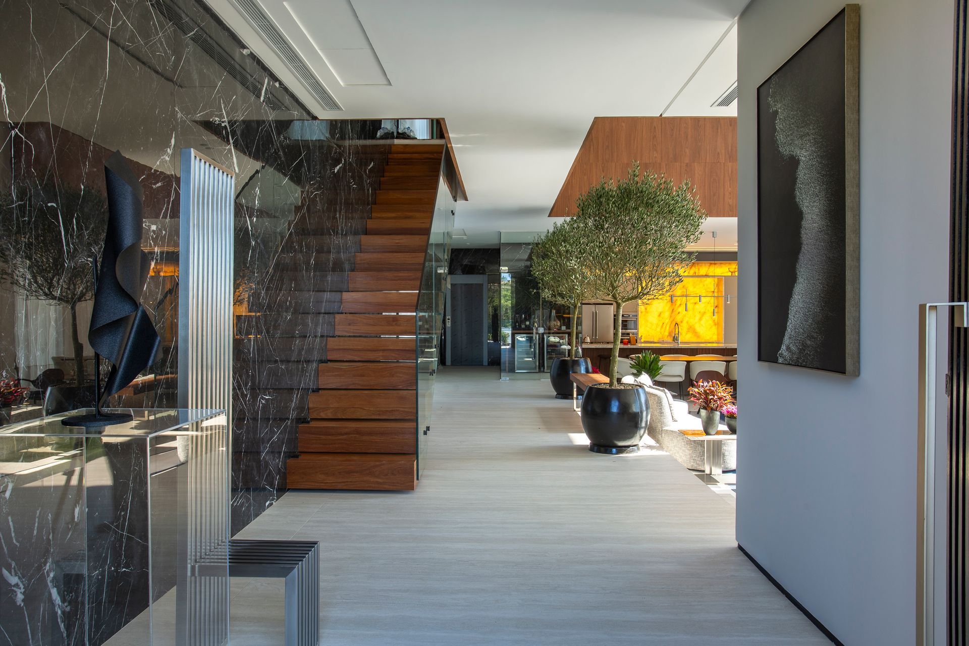 A casa traduz um briefing de hospitalidade sem recorrer a excessos. É o tipo de projeto que aposta na permanência dos materiais, na luz bem dosada e em escolhas que sustentam o uso cotidiano, mesmo em uma metragem generosa.