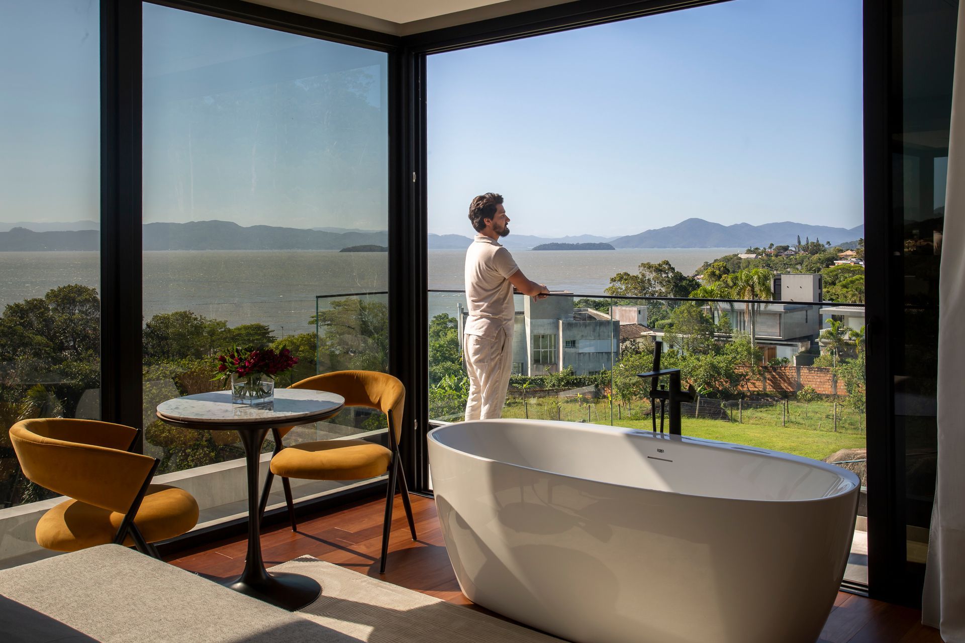 Casa em Cacupé desenhada para receber, com 1.300 m² e vista para o mar