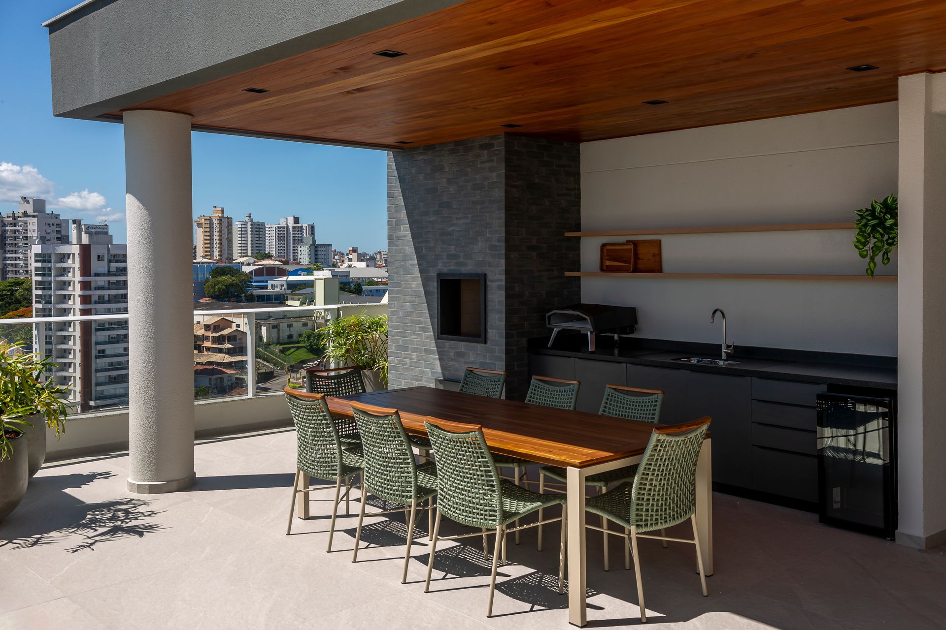 No topo do empreendimento residencial La Spezia, no coração de Florianópolis, o rooftop revela-se como uma verdadeira praça suspensa que convida à convivência, ao bem-estar e ao contato contemplativo com a exuberante paisagem da Capital catarinense.