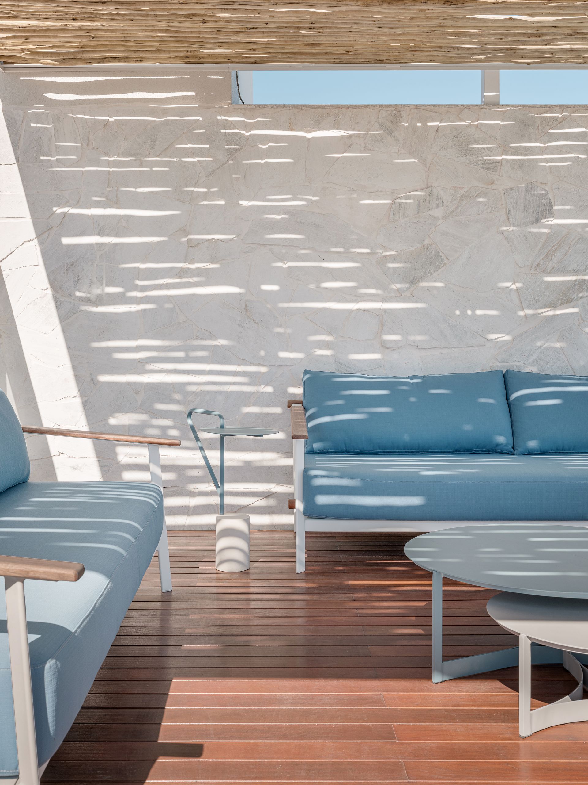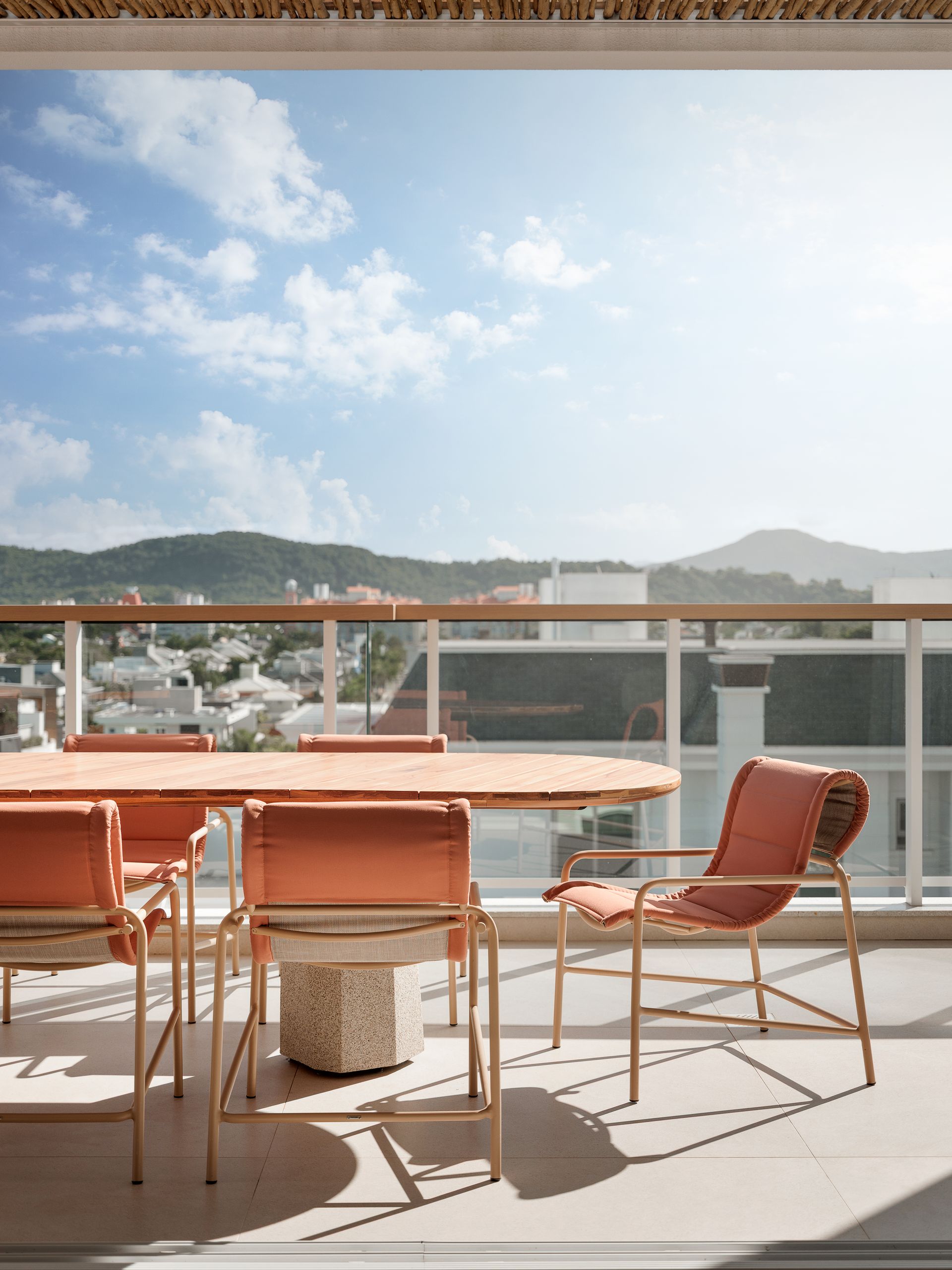 Peças em tons suaves, de madeira clara, feitas com materiais de qualidade, perfeitos para as áreas externas. Na escolha das cores, os tons mais terrosos combinam com o estilo do projeto e agregam ainda mais estilo e contemporaneidade.