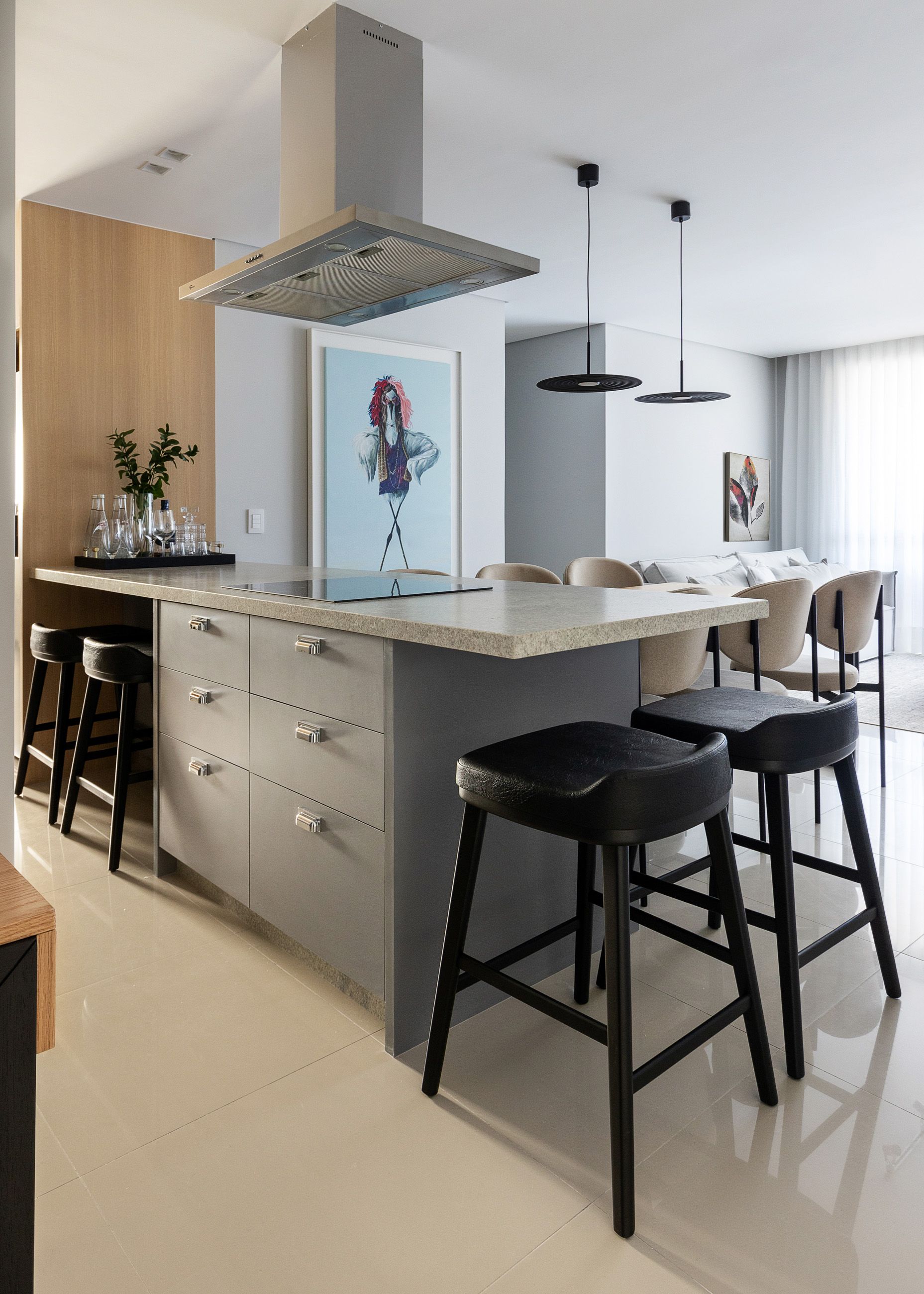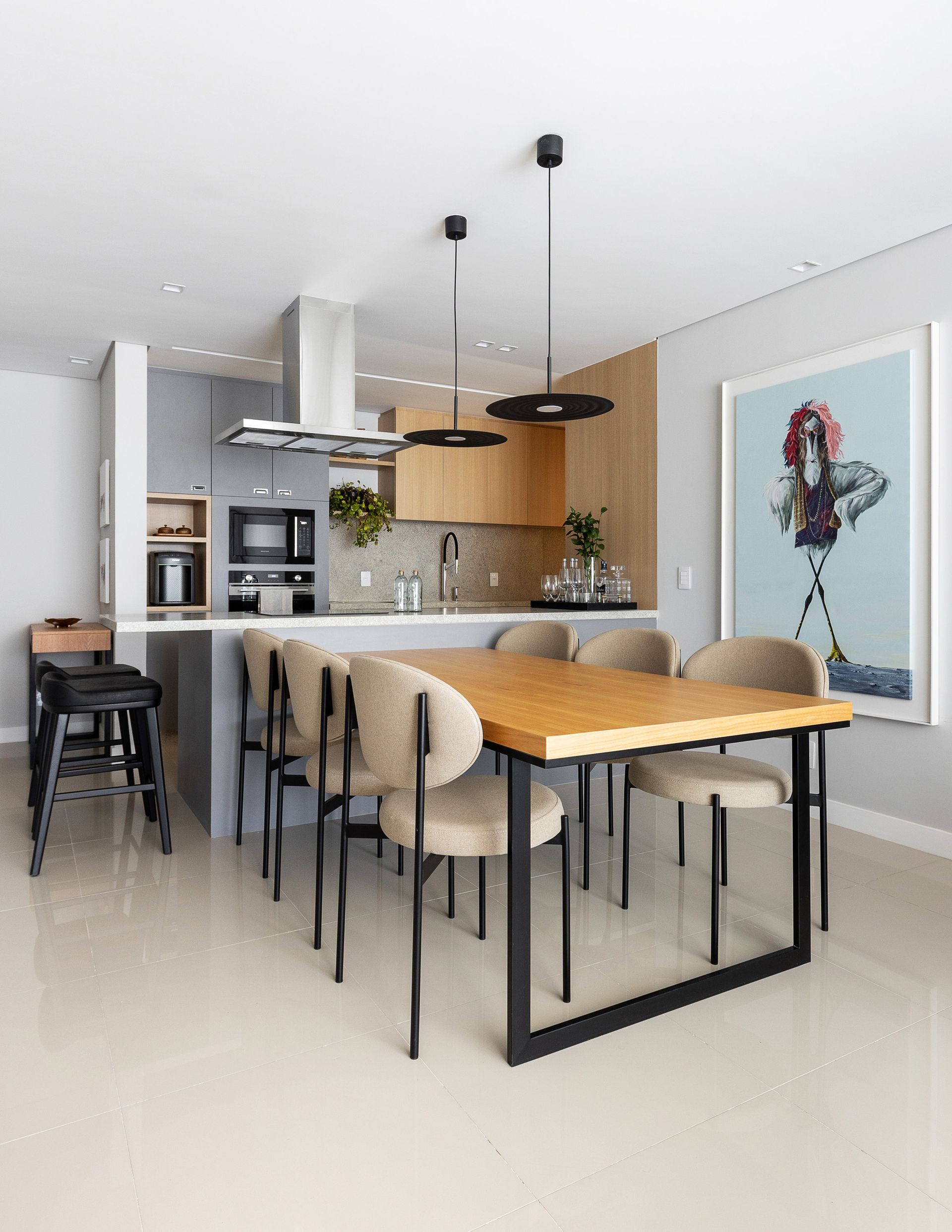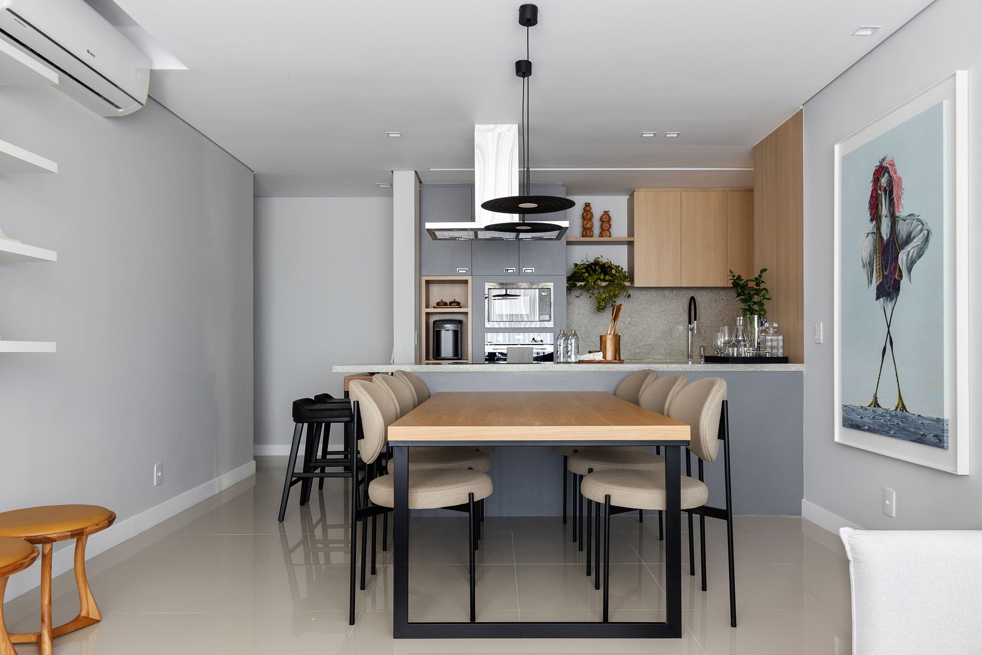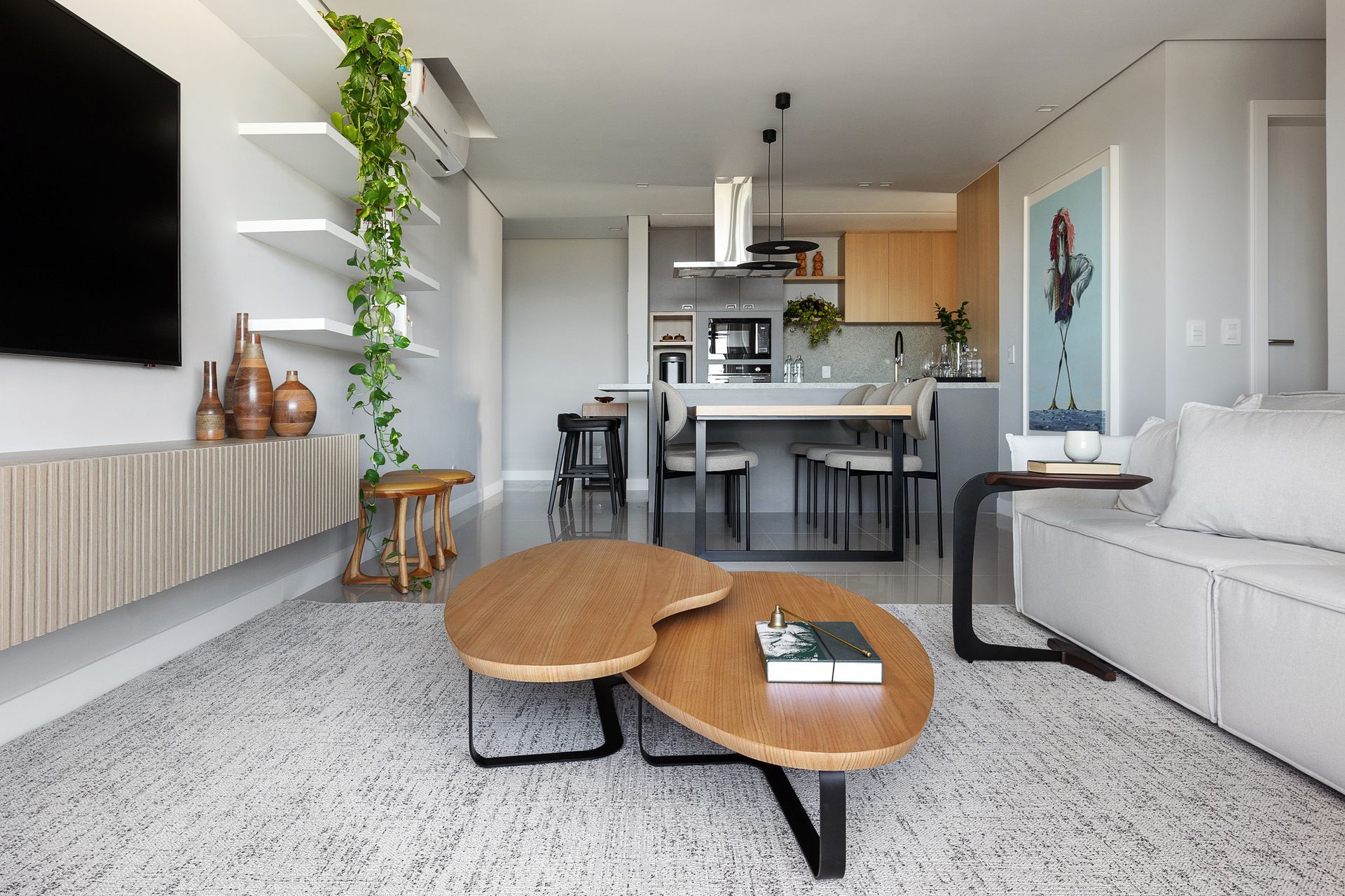 Ao iniciar a reforma da área social deste apartamento, em Florianópolis, a arquiteta Caroline Berto já contava com uma planta ampla e integrada, o que ofereceu uma base promissora para o projeto. O desafio, no entanto, foi ajustar detalhes pontuais que refletissem as necessidades e o estilo de vida dos moradores, que adoram receber familiares e amigos. O objetivo principal foi criar um ambiente acolhedor e funcional, onde a interação fosse natural e o conforto, prioritário.