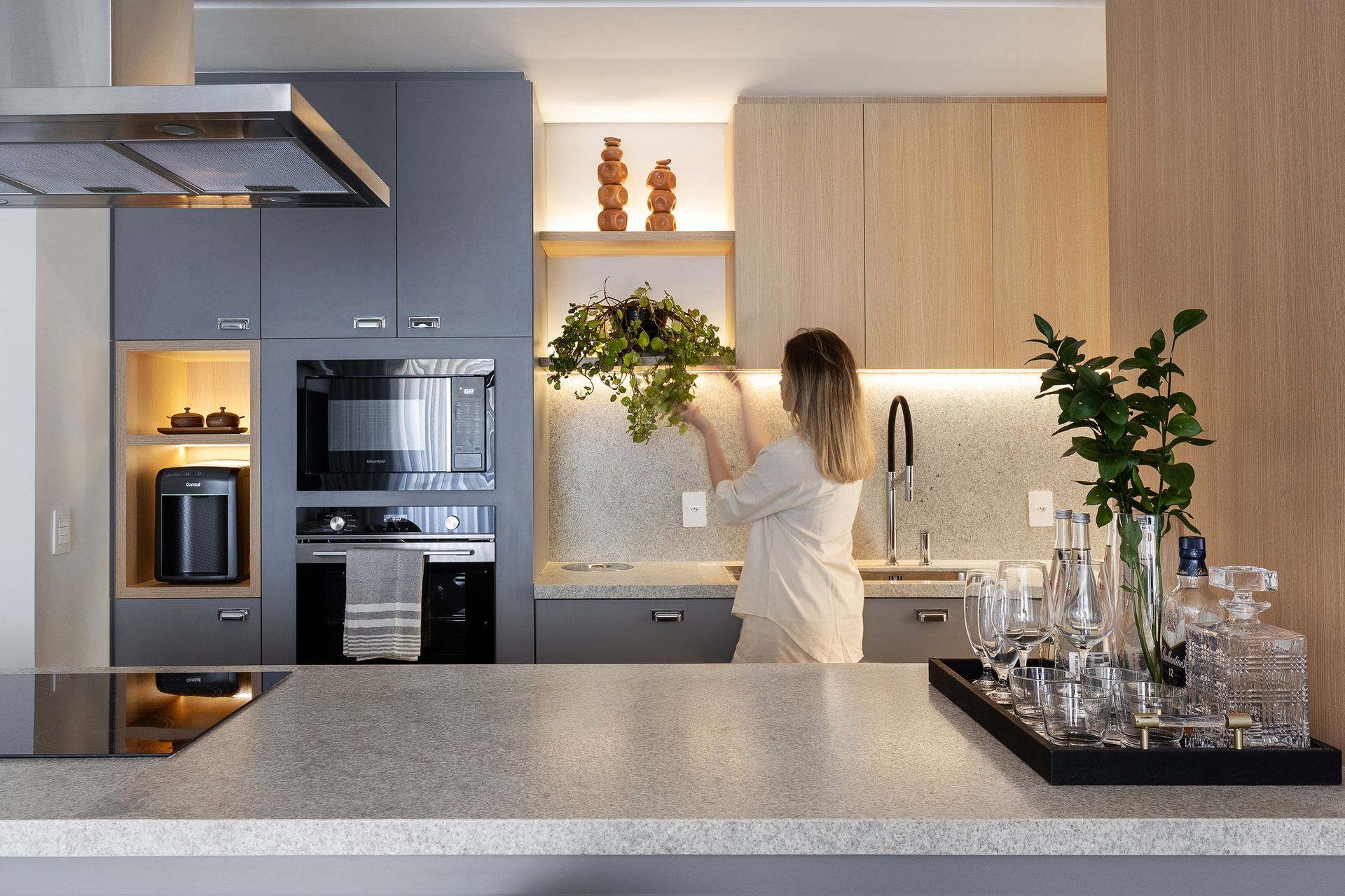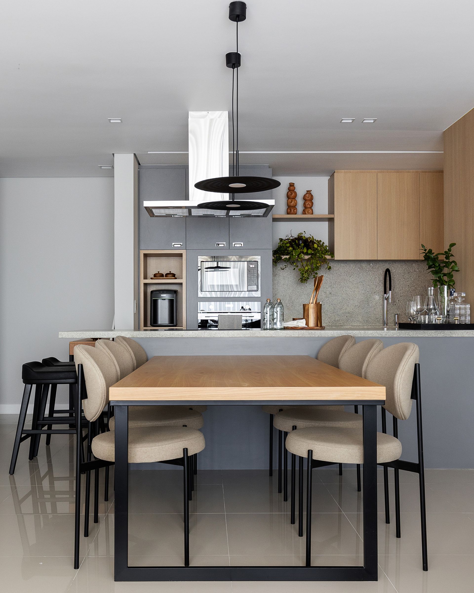 A arquiteta destaca a importância do mobiliário no projeto, explicando que a escolha de cada peça foi feita com muito cuidado, sempre buscando o equilíbrio entre estética e funcionalidade. "Estas peças têm um papel fundamental em qualquer ambiente. Além de complementar o design, oferecem conforto e praticidade no dia a dia dos moradores. Para este projeto, escolhemos móveis que, além de funcionais, trouxessem um toque de sofisticação e personalidade aos espaços, integrando-se perfeitamente ao conceito arquitetônico", explica a profissional.