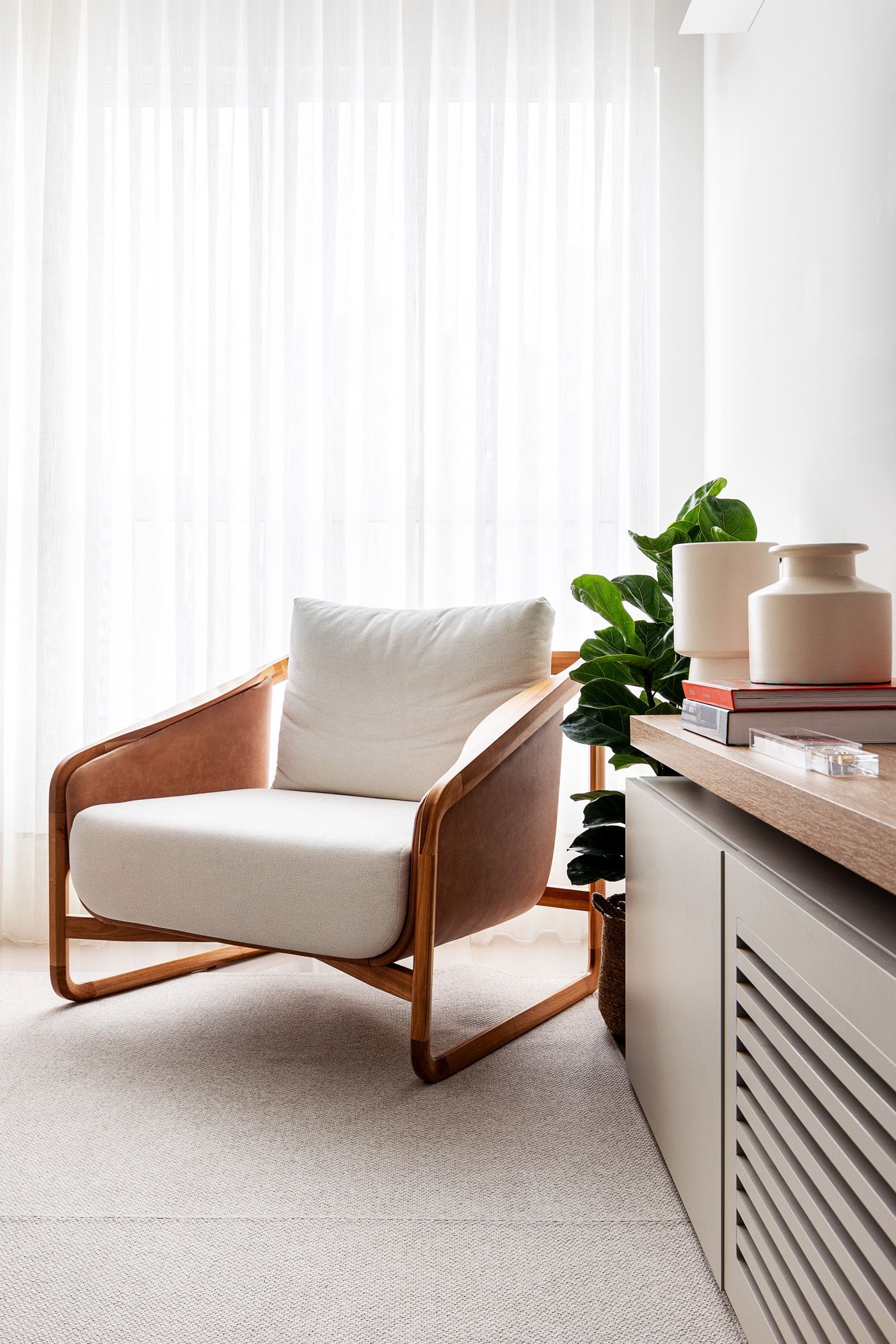 - Poltrona Aresta, assinada por Rejane Carvalho Leite: Em madeira Uva do Japão, totalmente sustentável.