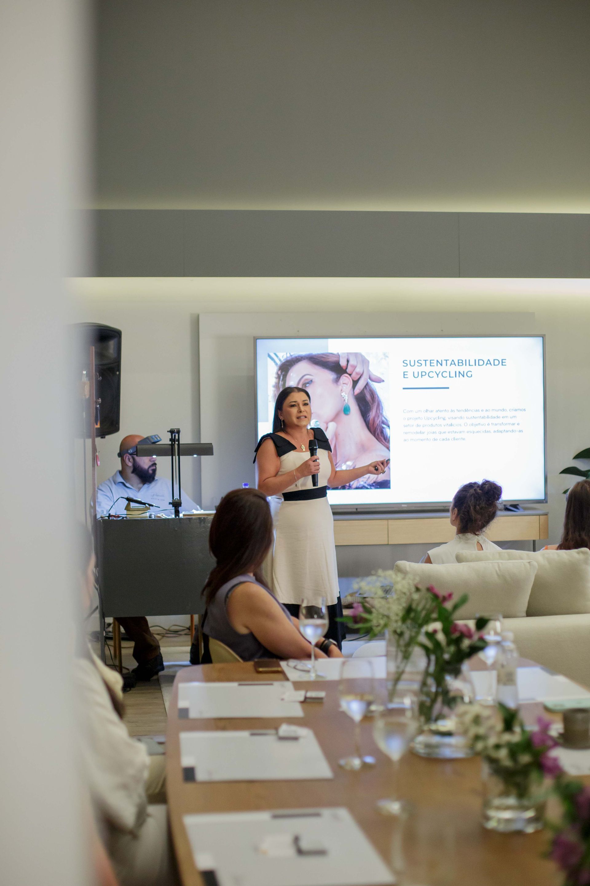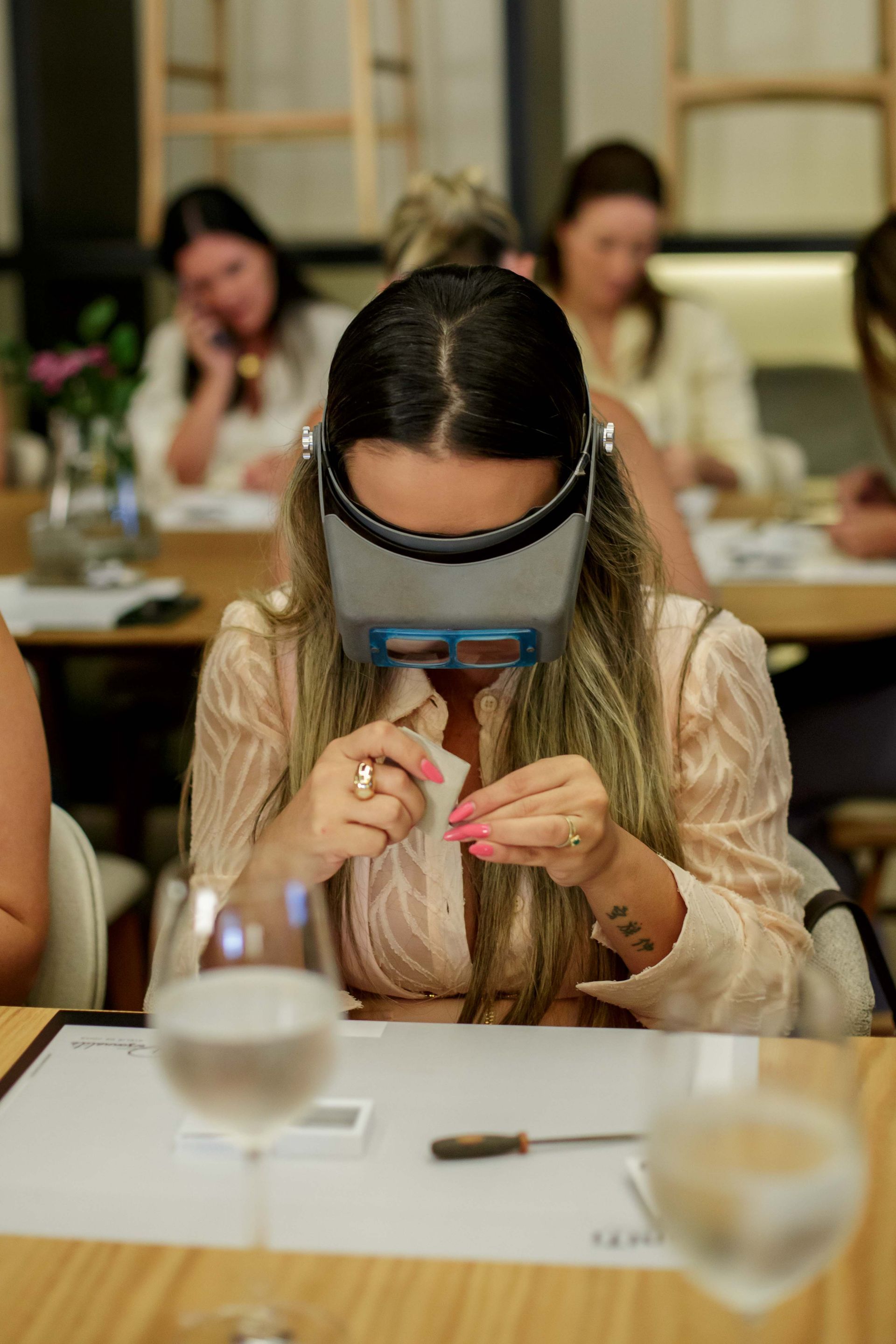 Na última quinta-feira, 13 de março, a ContTi Home Design, em parceria com a Personnalité Joias, recebeu cerca de 30 arquitetas e designers de interiores em uma vivência especial. No mês dedicado às mulheres, a oficina de joalheria trouxe um convite para olhar além do cotidiano profissional e mergulhar em um processo manual e simbólico: a criação de pingentes em pedras naturais, feitos pelas profissionais.