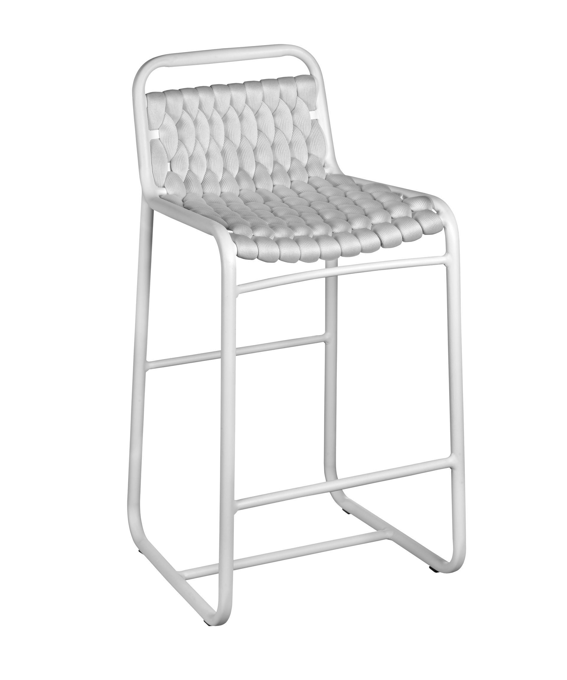 A ergonomia aliada a tecnologia de materiais tem grande importância na concepção do produto que se destina a projetos arrojados que buscam equilíbrio na justa medida da forma. Estrutura em alumínio com pintura eletrostática, trançada artesanalmente em tricô náutico.