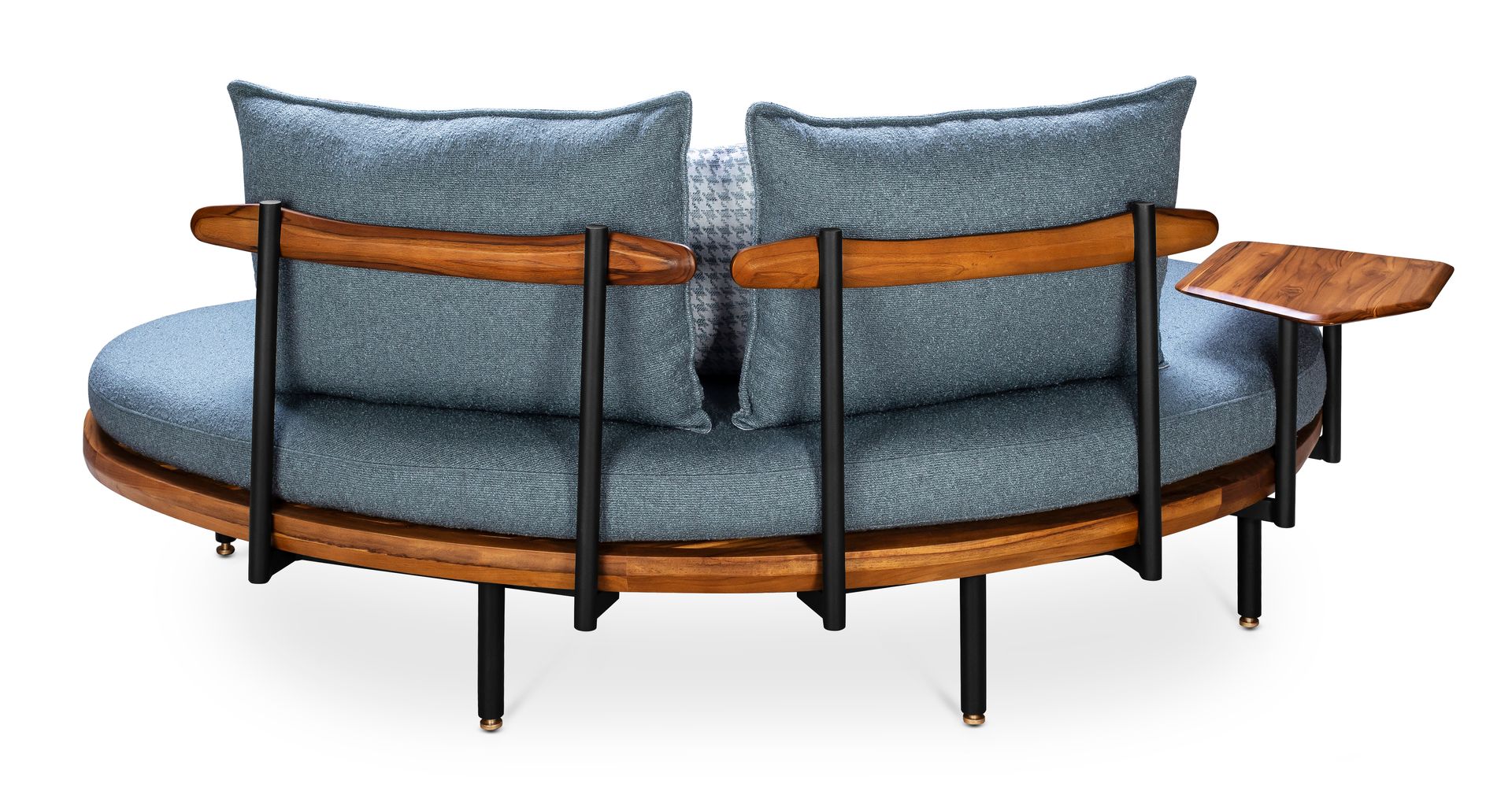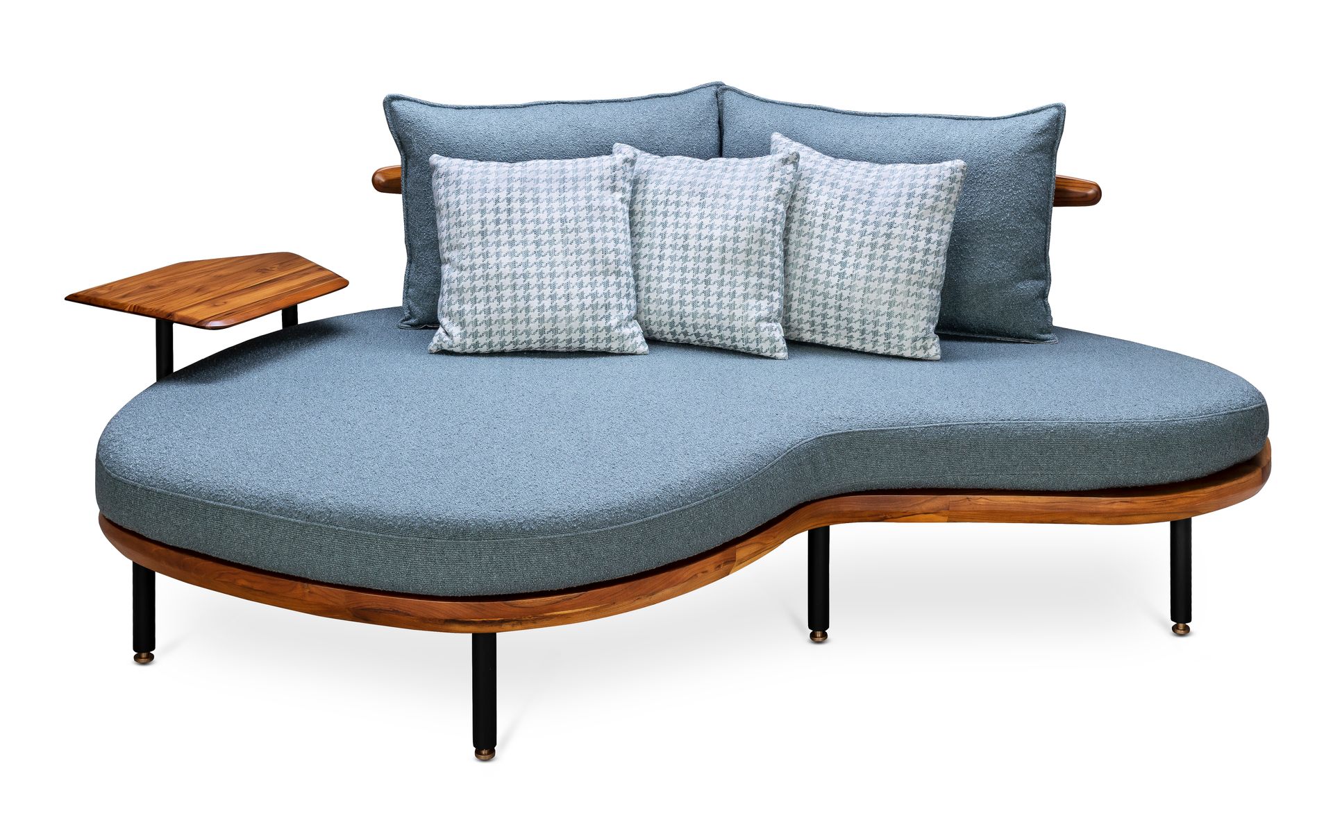 Com formato natural e amorfo o módulo Lagoon nasceu da inspiração direta aos desenhos orgânicos dos lagos, por isso seu nome. À sua estrutura em madeira com pés robustos, são adicionadas peças acessórias que fazem as vezes do encosto e mesa. As almofadas arrematam a dinâmica estrutural trazendo leveza, ergonomia e conforto.