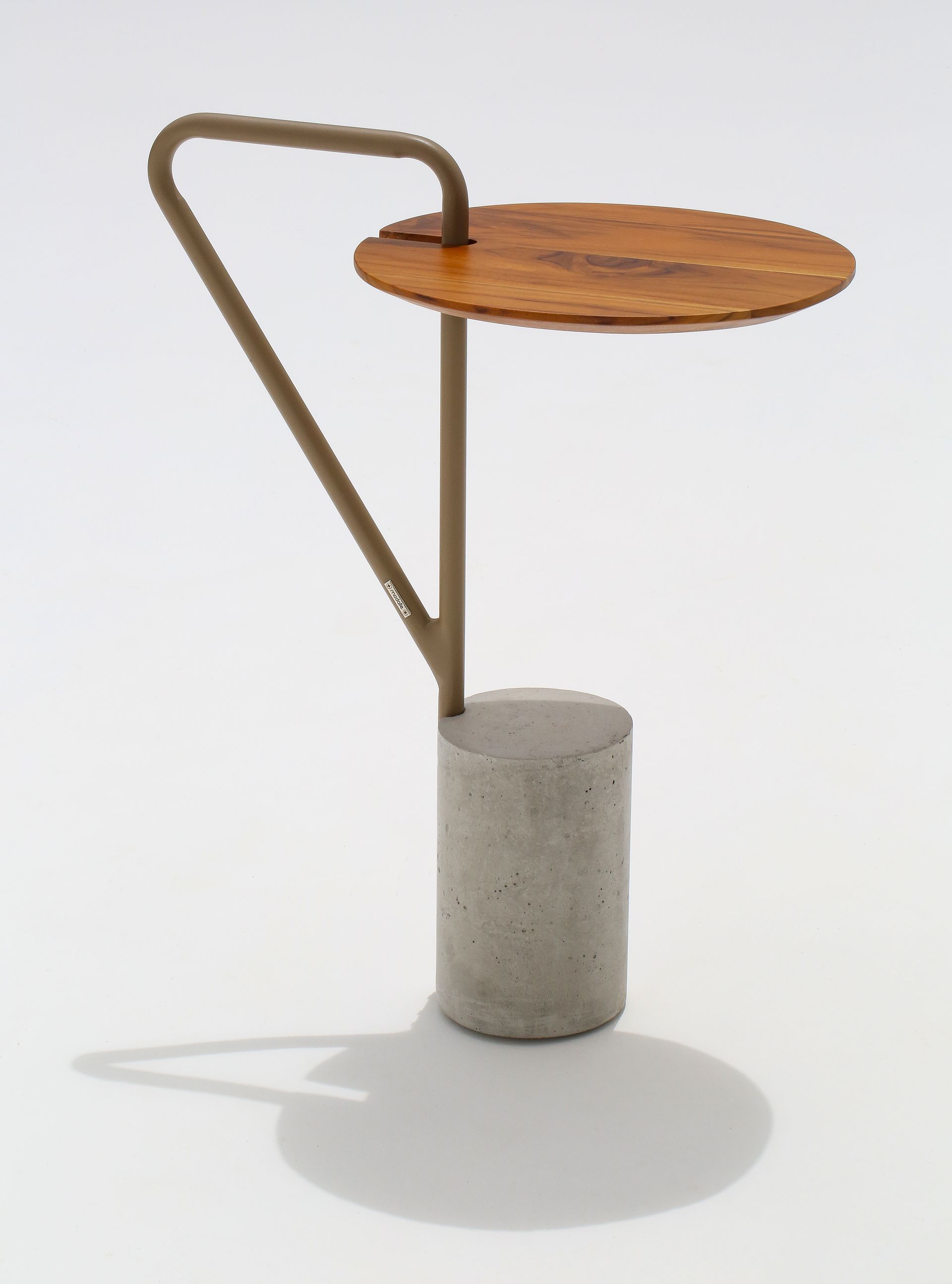 Sua inspiração nos corais marinhos brasileiros, sugere um design generoso no mix de materiais, materializado na seleção da madeira de teca, tubo de alumínio e no concreto unicelular
