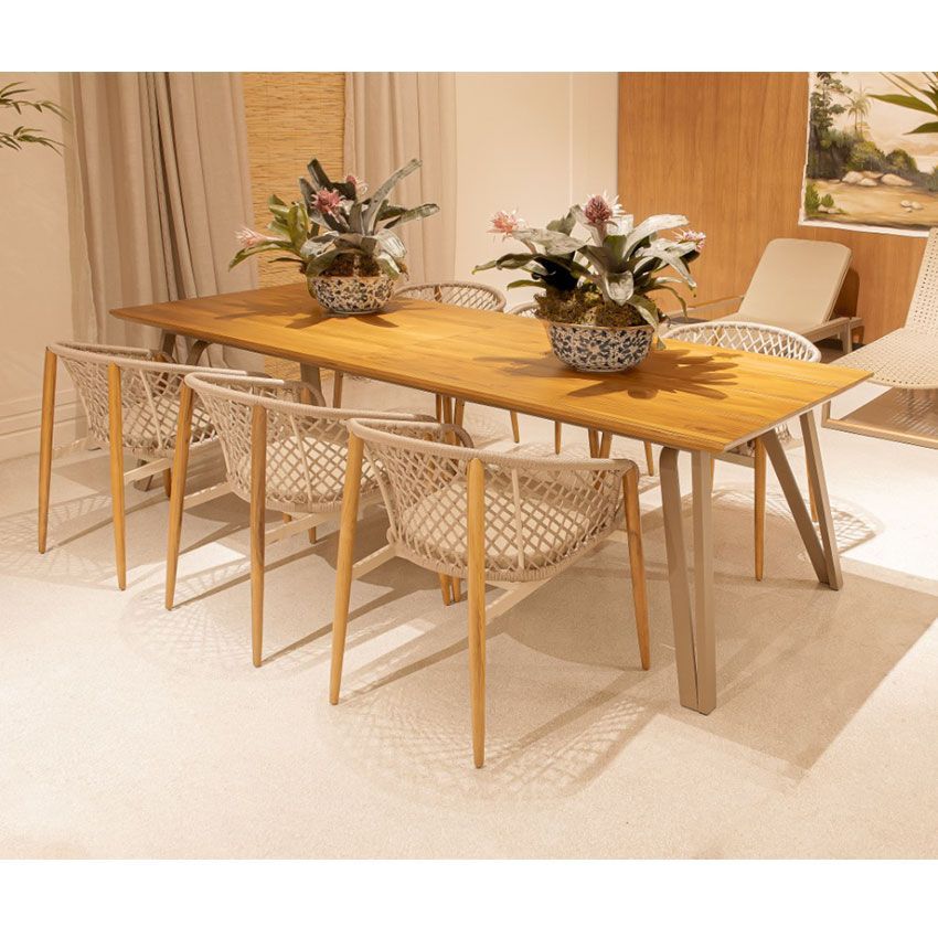 Acabamento alumínio, madeira teca