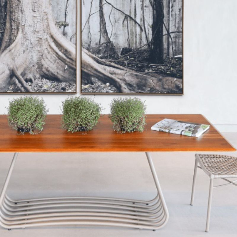 Atemporal e sofisticada, ideal para as áreas gourmet. A resistência da base em alumínio, com a beleza do tampo em madeira Teca.