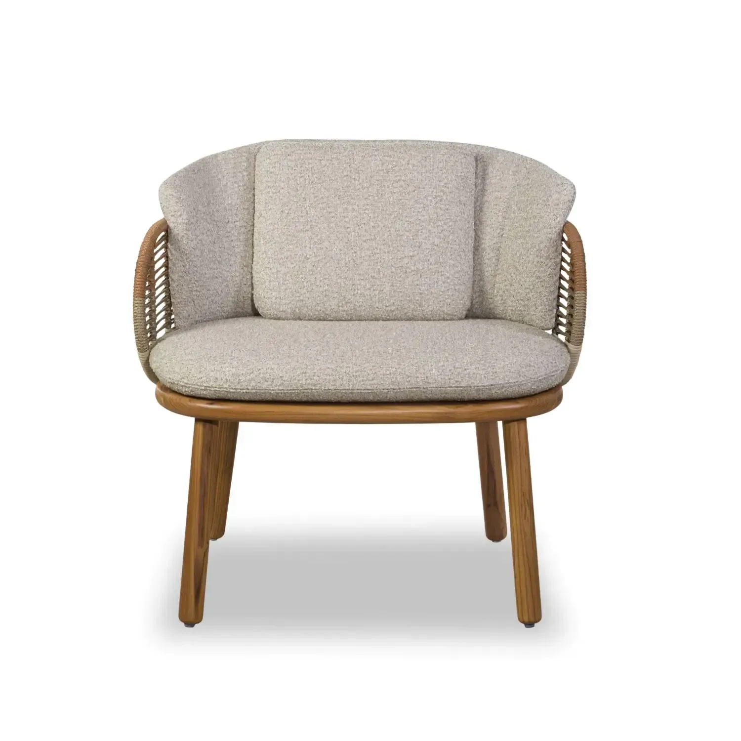 Intermezzo sugere uma pausa ou um intervalo entre dois momentos, inspirado no termo musical italiano que significa um breve momento entre atos. Essa pausa é capturada visualmente através da formas curvas que se repetem nas diferentes partes das peças, criando uma sensação de continuidade e harmonia. As linhas curvas, por sua vez, remetem à suavidade e à fluidez, enquanto o conceito de intermezzo, sugere que essas peças ocupam um espaço intermediário — uma transição confortável entre o descanso e a contemplação ao ar livre. O nome também pode ser associado ao uso das cadeiras e poltronas como elementos que proporcionam uma pausa no ritmo cotidiano, um momento de descanso em meio ao ambiente externo. Assim, Intermezzo compreende a ideia de transição e intervalo, ao mesmo tempo em que realça o caráter geométrico e repetitivo das formas curvas, dando à coleção um ar refinado e ritmado, como uma peça de design que se harmoniza com o entorno natural.