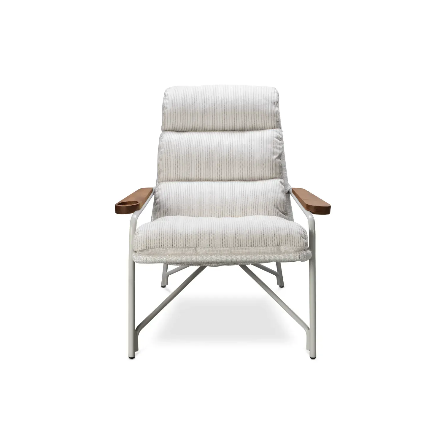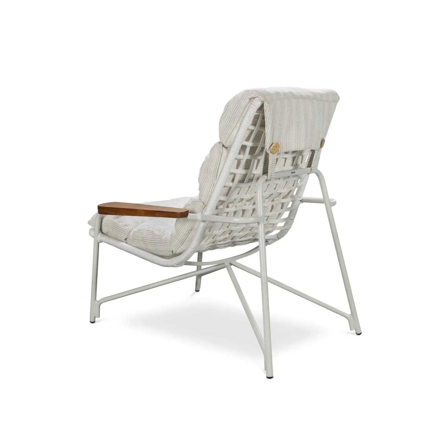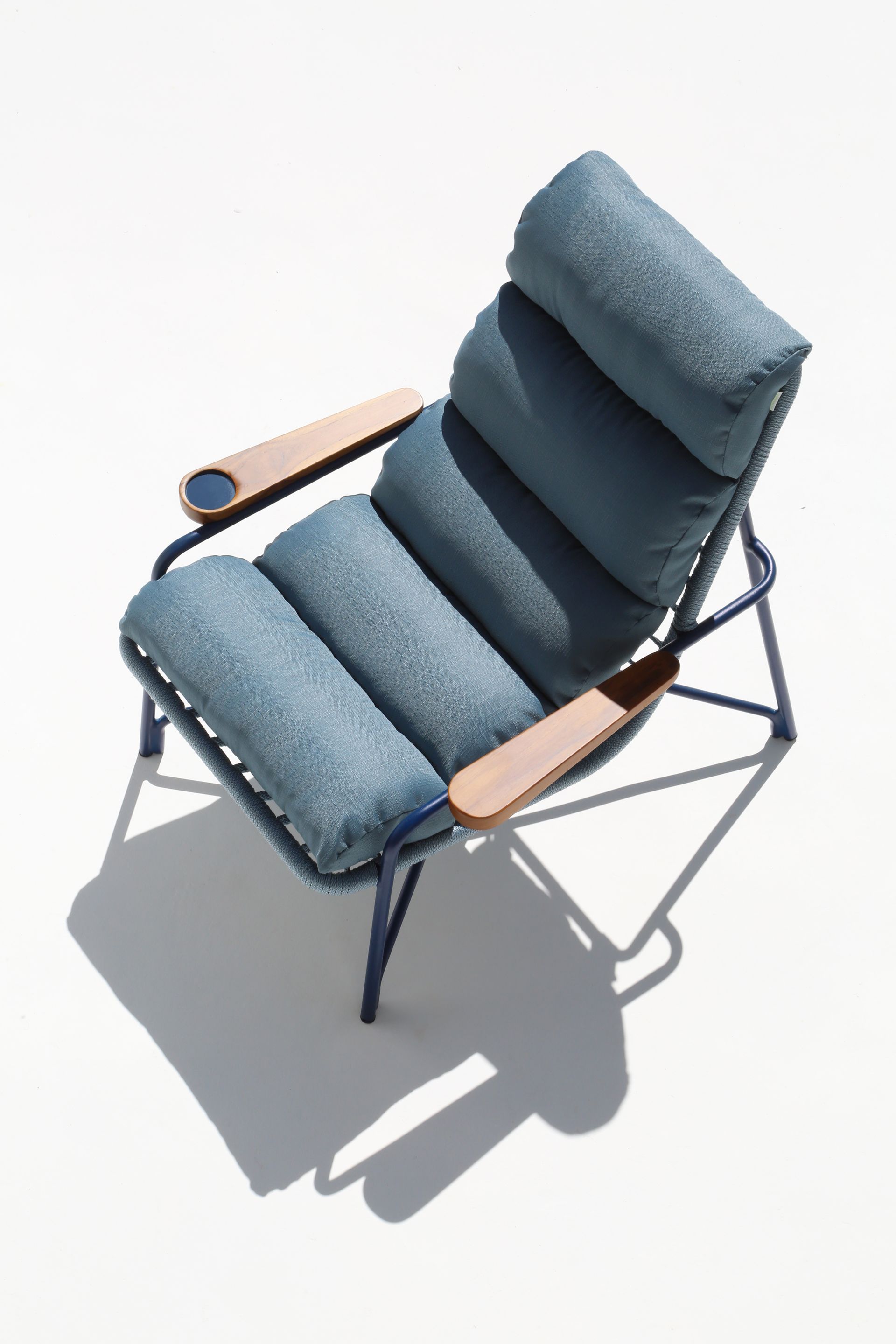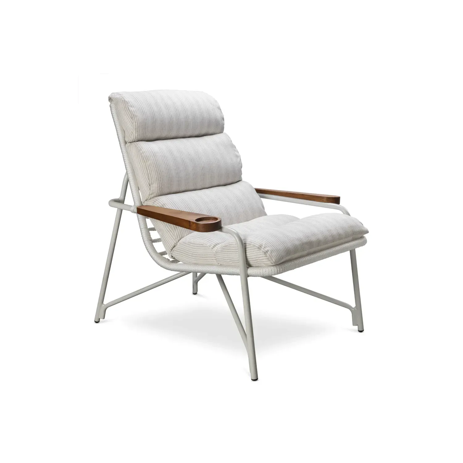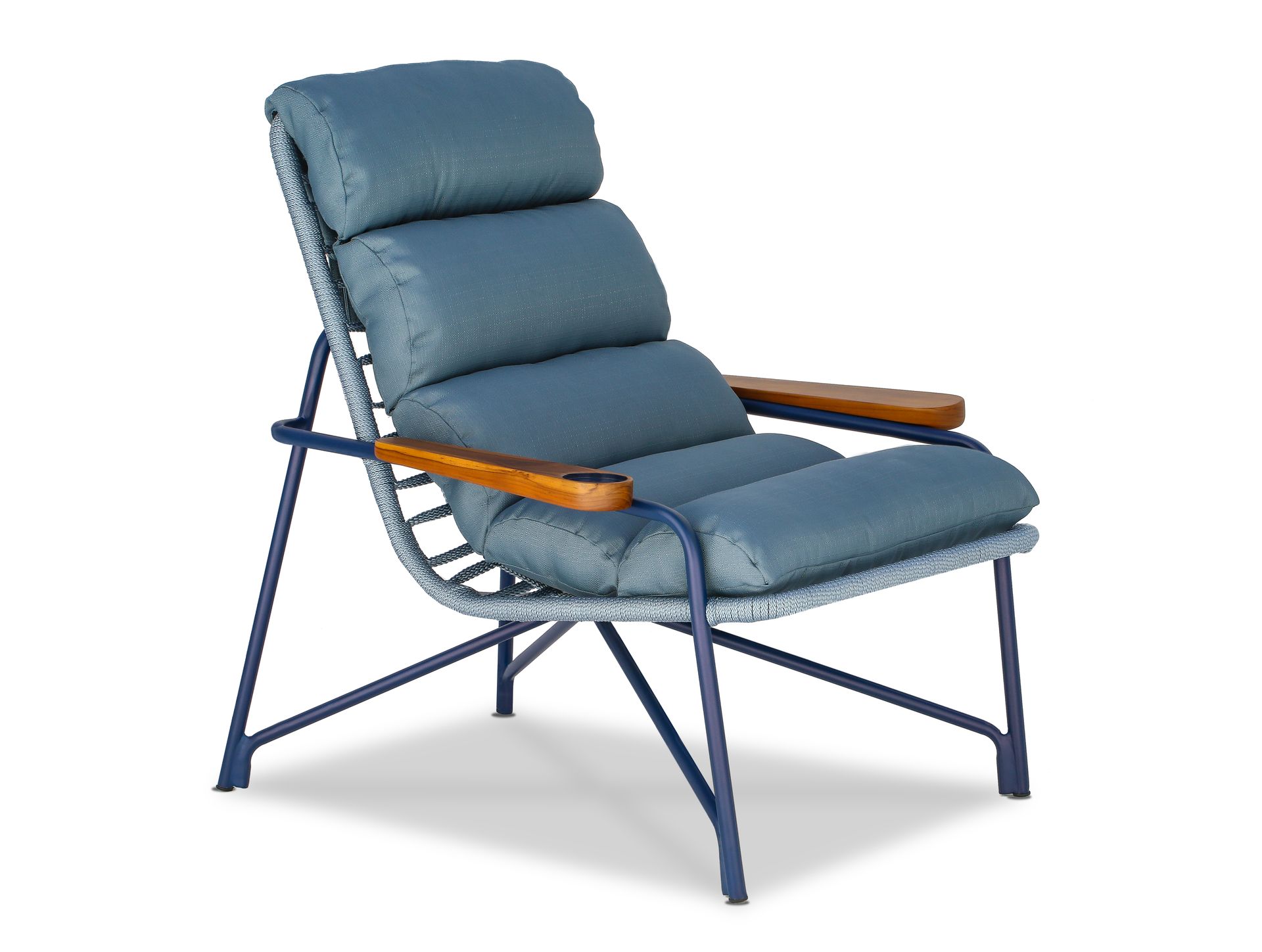 Acabamento: alumínio, madeira teca, corda náutica, tapeçaria removível
