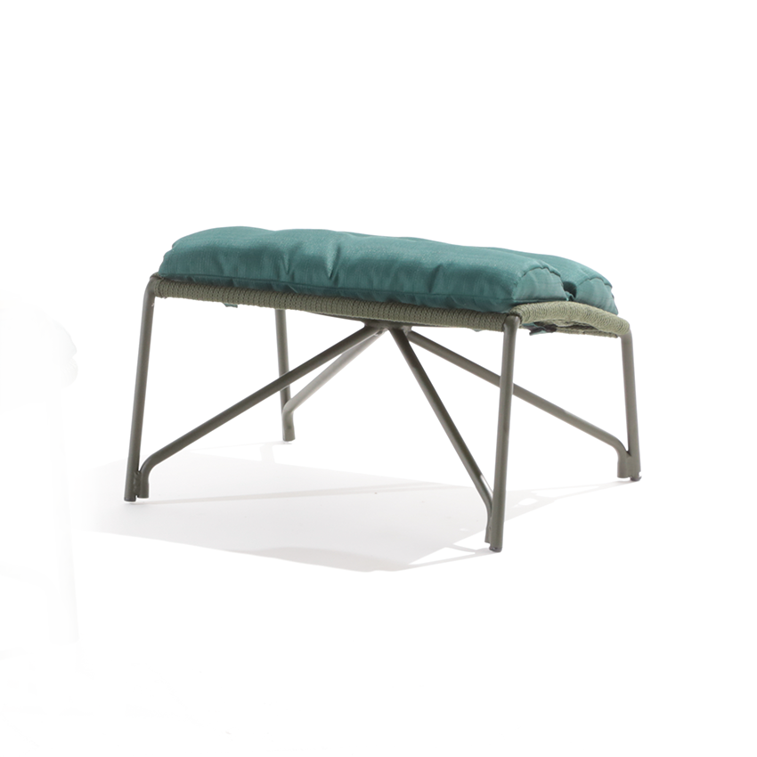 Acabamento: alumínio, madeira teca, corda náutica, tapeçaria removível