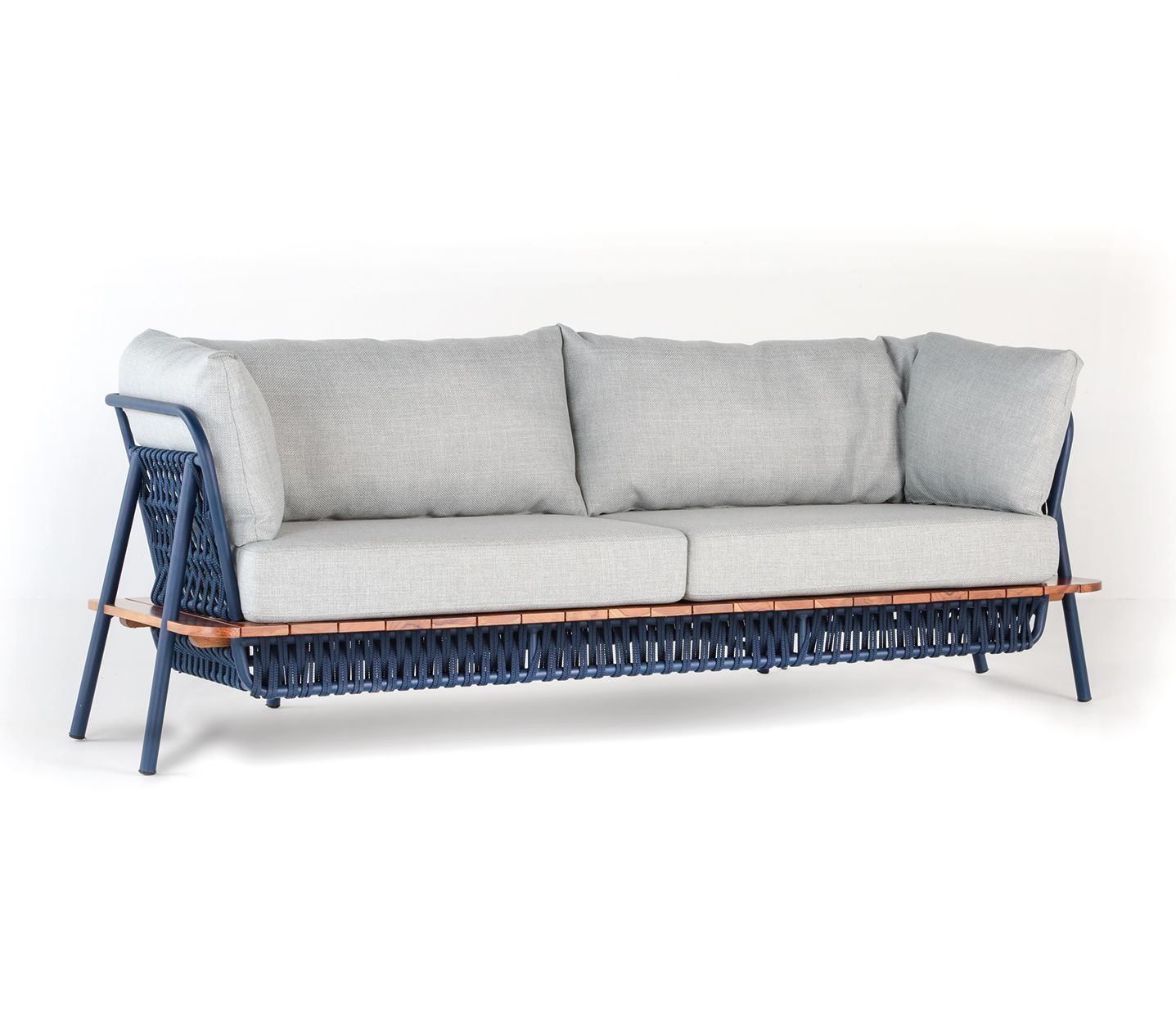 Acabamento: alumínio, corda náutica, madeira teca, tapeçaria removível