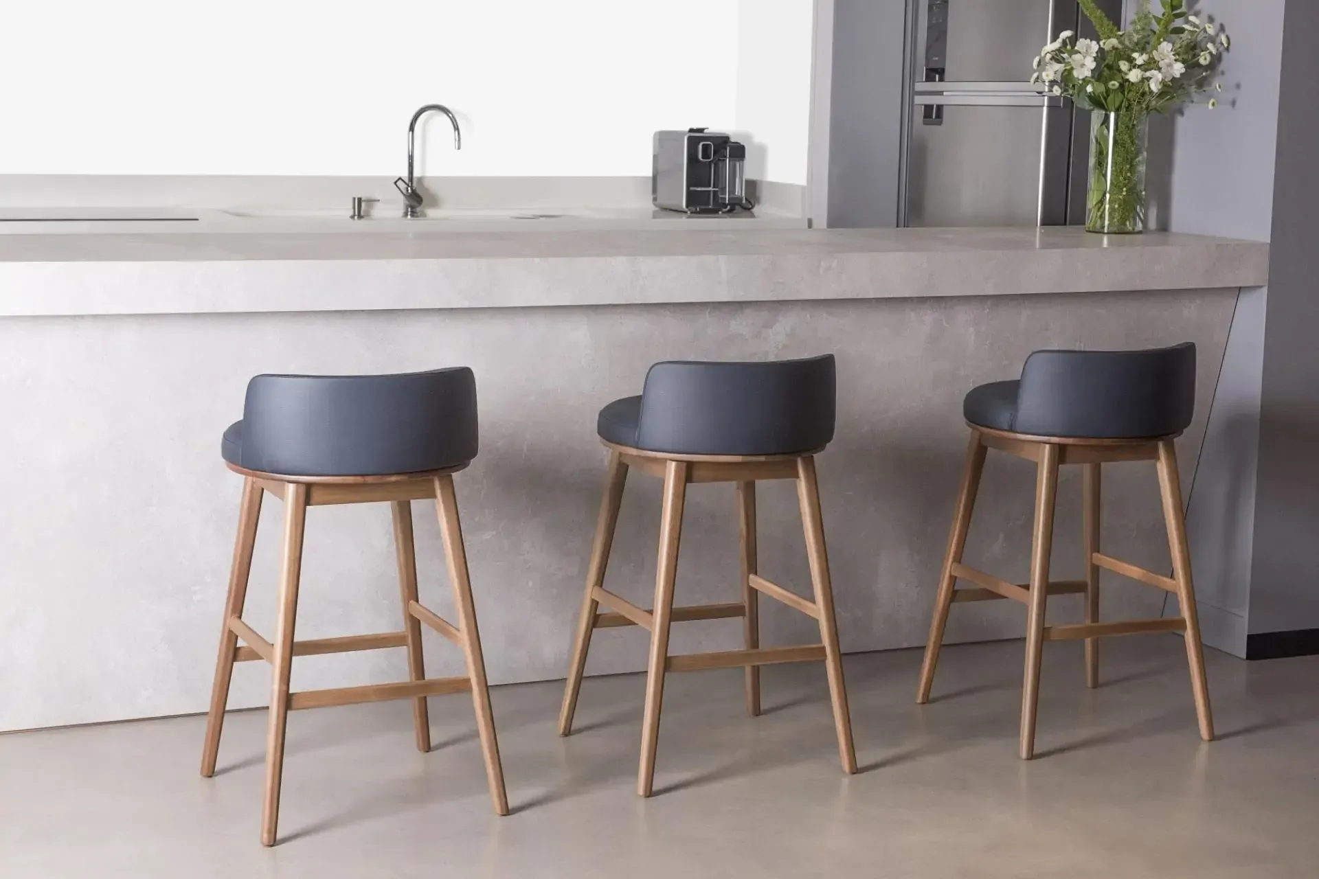 A banqueta Ada se destaca por seu assento giratório e pelo contraste de linhas retas e arredondadas, que trazem personalidade a um móvel atemporal e sofisticado.