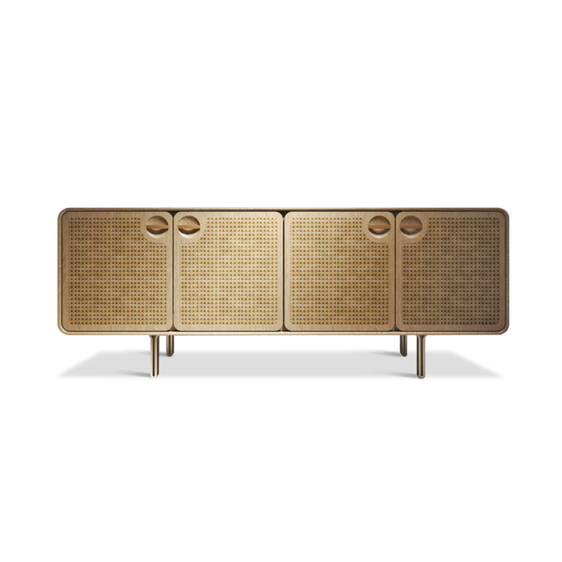 O Buffet Zenitt tem grande influência escandinava com toques peculiares de Brasil anos 50. A presença do metal dourado trouxe um toque único de sofisticação para a peça.