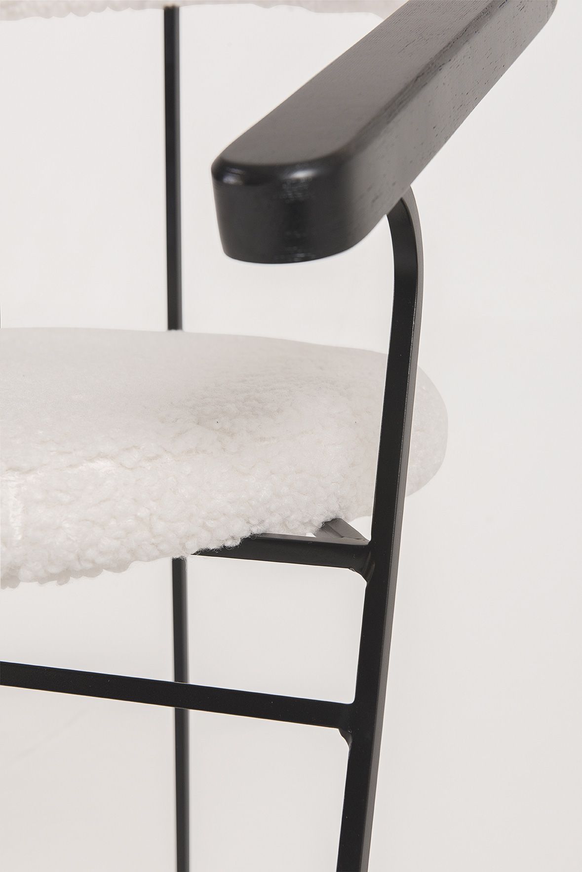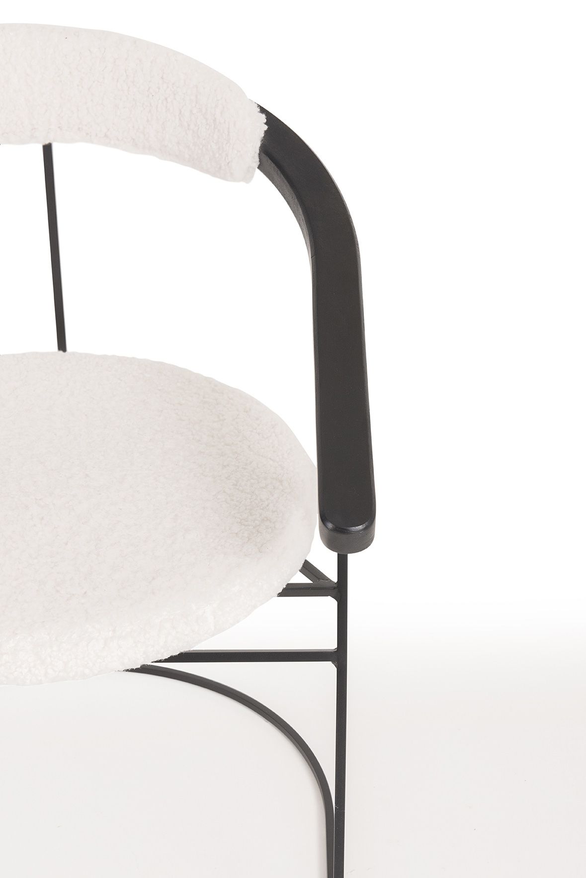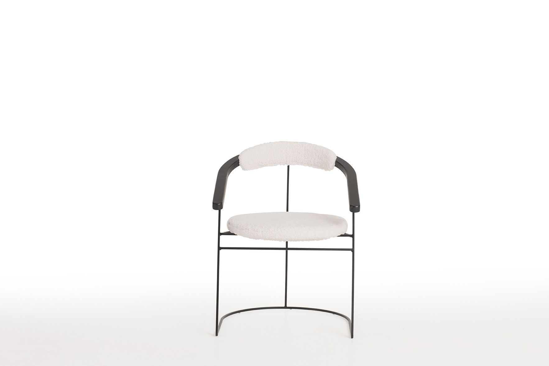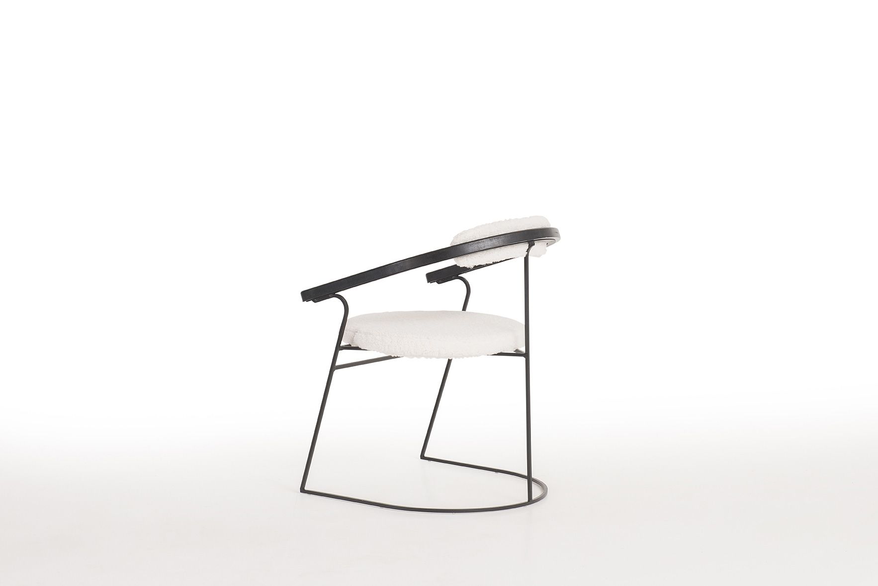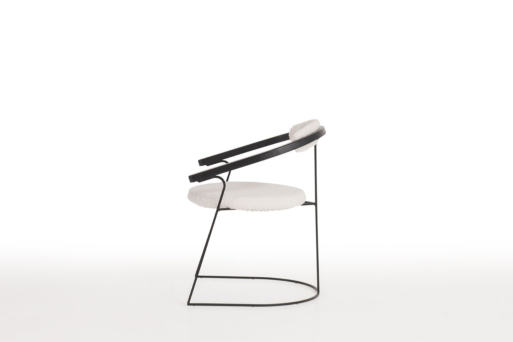 Leve, delicada, mas de grande impacto visual, a cadeira Butiá tem seu design delineado por uma fina barra maciça de aço que sustenta braços de madeira, um assento e um pequeno encosto estofado em concha, completando a proposta com muito conforto.