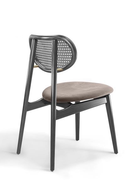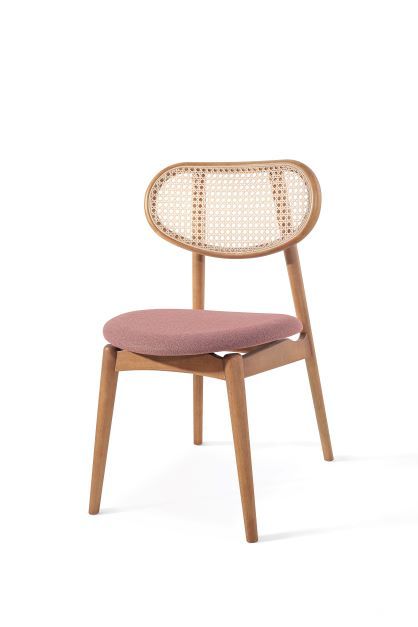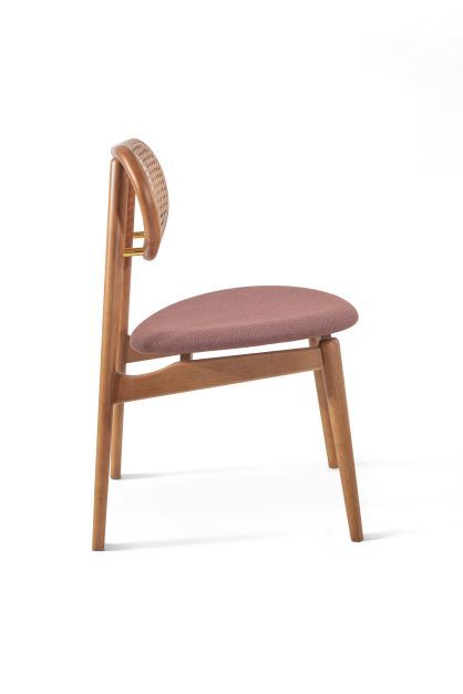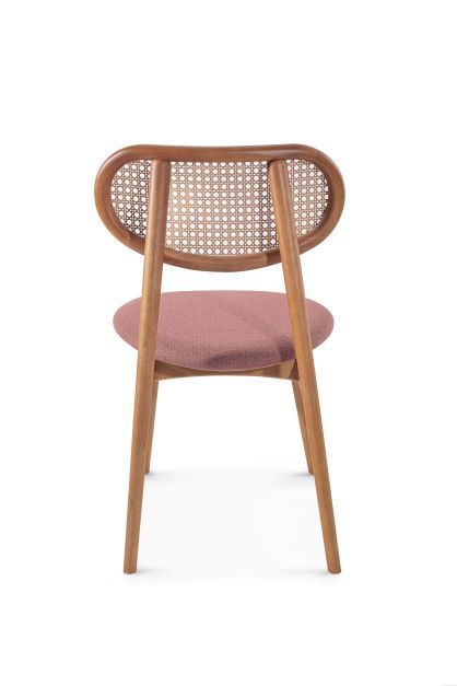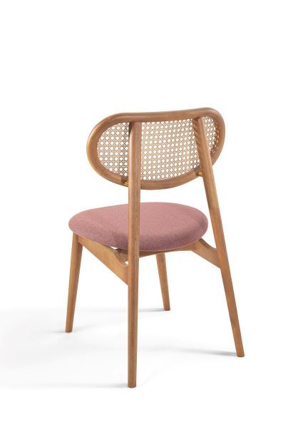 A cadeira Delta, com design sofisticado e leve, assinado por Ibanez Razzera. A sua estrutura é de madeira tauari, sendo os pés torneados e as demais peças todas boleadas, deixando a peça com mais conforto. O encosto tem a tela ratan, podendo ser nas opções sextavada ou nogueira. Entre o encosto e os pés traseiros, tem um detalhe de metal, evidenciando ainda mais o seu charme. A inclinação entre o assento e o encosto deixa a cadeira com uma ergonomicamente confortável, e o formato curvo do assento auxilia ainda mais esse conforto