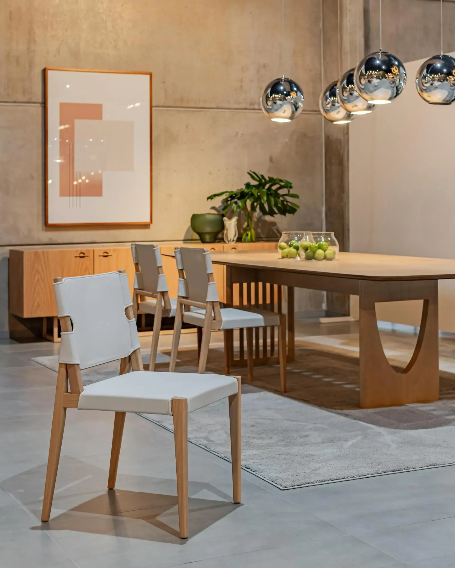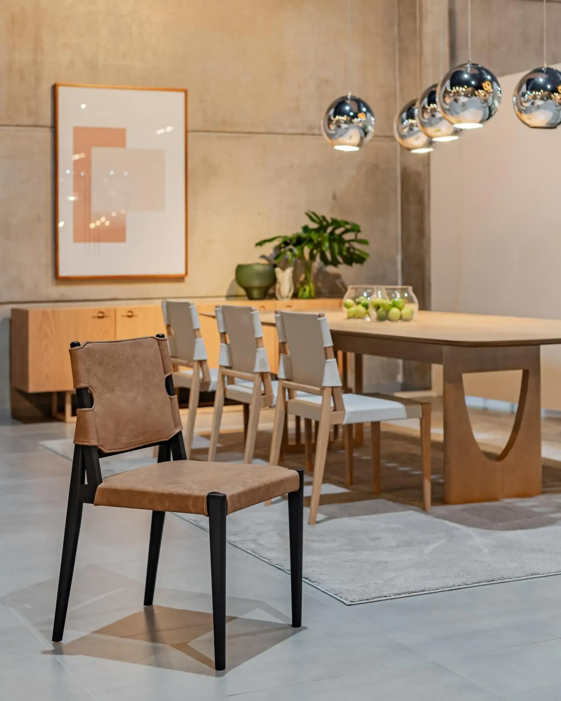 A cadeira Holy tem design leve, carregado de personalidade. O tecido oferece conforto e a estrutura favorece seu deslocamento pelo ambiente.