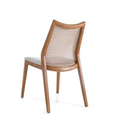 Com grande personalidade, a cadeira Júlia se destaca pelo elaborado trabalho de marcenaria, pelos seus ângulos acentuados e pela aplicação de tela ratan em seu encosto, recurso que dá muito conforto ao sentar. Um ótimo exemplo de como elementos vazados na decoração trazem respiro e leveza para os ambientes. É a garantia de uma cadeira perfeitamente ergonômica.