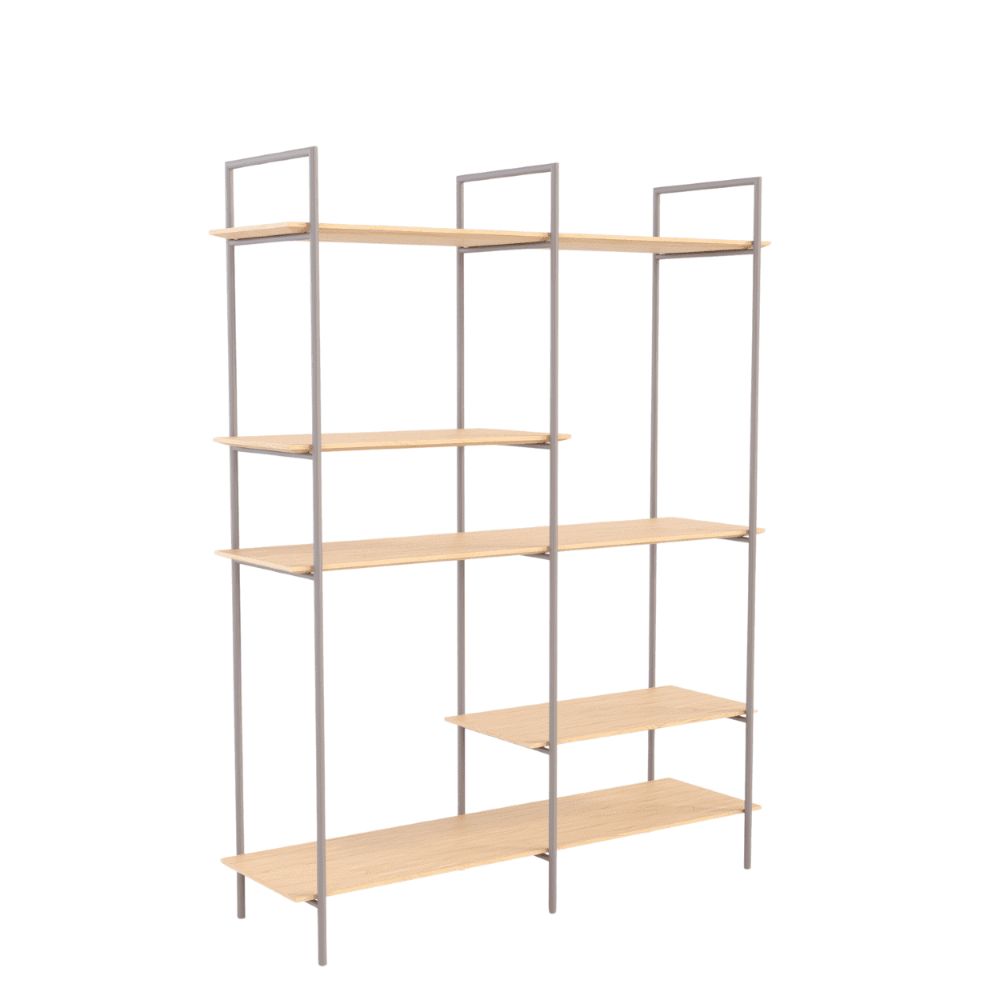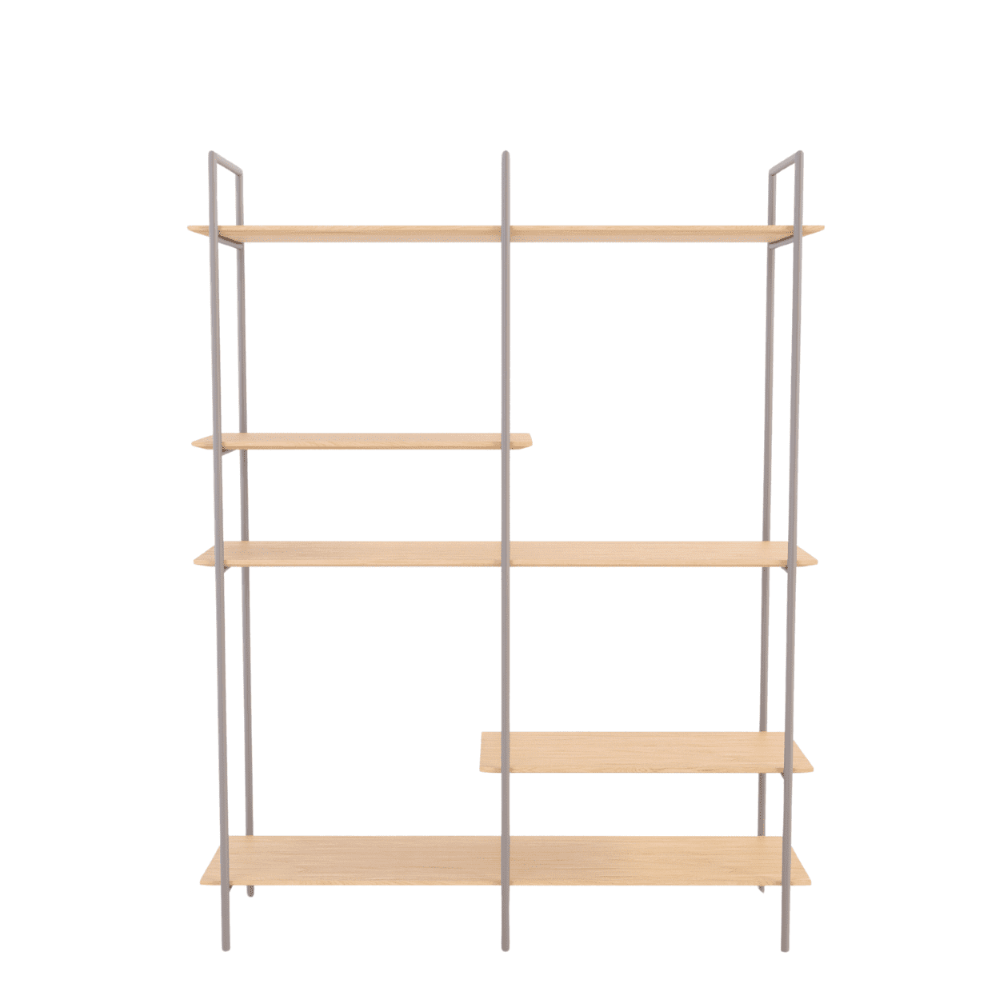 A estante Plana pode transformar seu ambiente, trazendo um toque de modernidade e elegância com um design que é ao mesmo tempo simples e surpreendente. Sua estrutura metálica assegura durabilidade e estabilidade, enquanto as prateleiras, projetadas com precisão para variar em dimensões e localizações, criam um visual dinâmico e elegante. Esta característica única não apenas adiciona um toque estético distintivo, mas também maximiza a funcionalidade e a versatilidade da peça.
