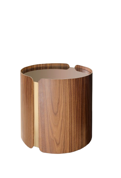A mesa lateral Vegas LX é uma peça minimalista e delicada, suas opções de acabamento a tornam ainda mais versátil. Apresenta formato circular com lâmina de madeira natural em todo seu entorno e um detalhe especial em inox. Seu tampo pode ser em lâmina, espelho, pedra e recouro, trazendo mais exclusividade para o produto.