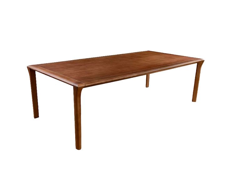 O desenho dos pés e laterais do tampo é o destaque desta mesa de linhas orgânicas. É uma peça discreta, elegante e funcional, que cabe em todos os estilos de projetos. A parte central é laminada em madeira natural ou tonalizada e os pés e laterais do tampo em madeira maciça usinada.