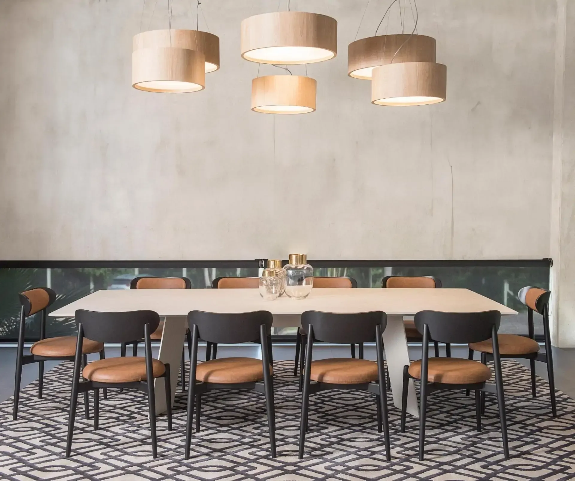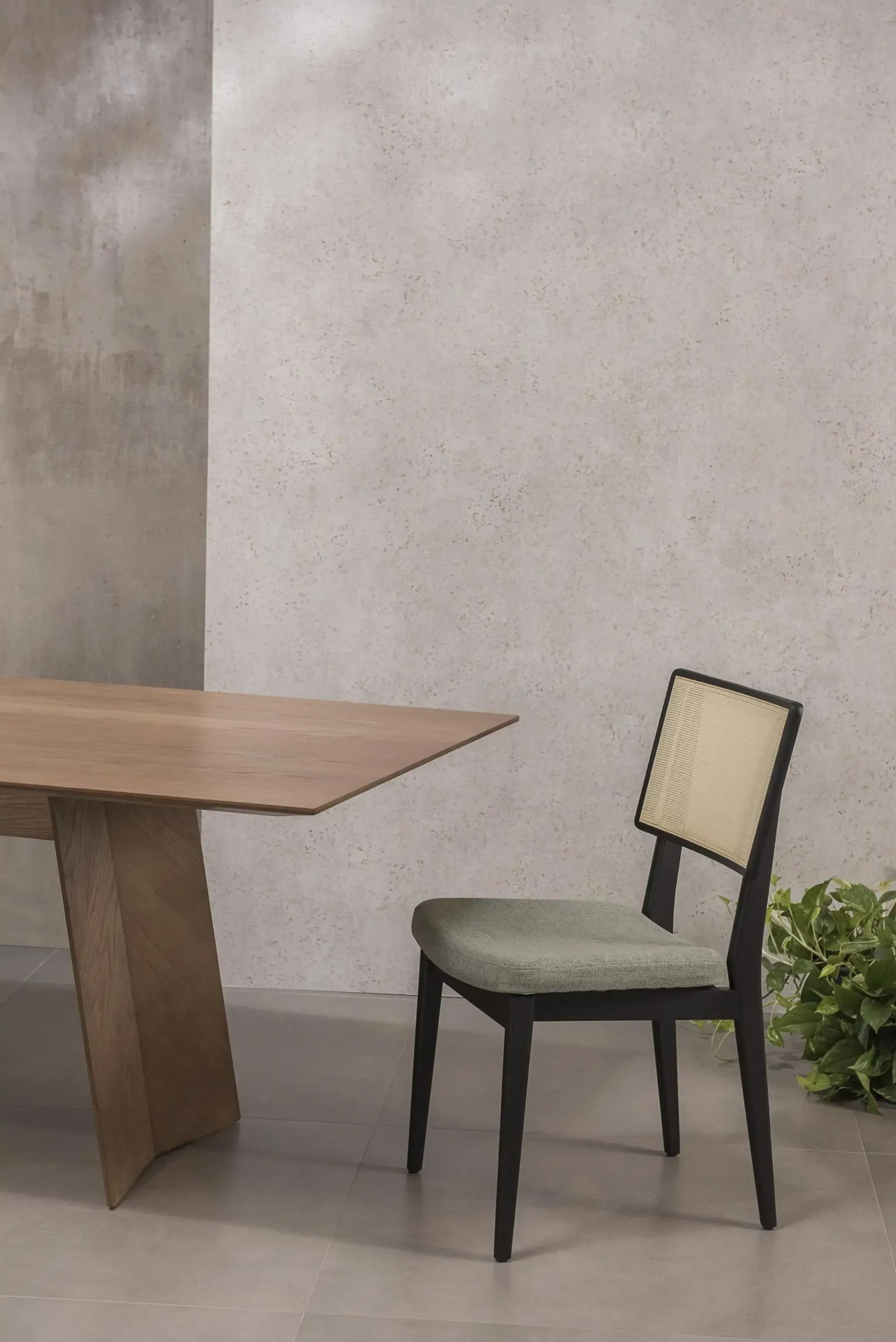 A Mesa Cindy se destaca pelos detalhes marcantes na combinação de lâminas nos pés. Uma proposta de base de mesa leve e funcional, que traz destaque ao produto.
