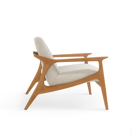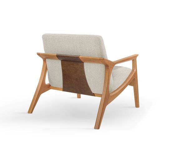 A poltrona Copan, possui curvas expressivas e marcantes que enaltecem ainda mais a madeira tauari que está toda trabalhada com chanfros e boleados, mostrando um trabalho primoroso de marcenaria e evidenciando a característica do design de Ibanez Razzera. O detalhe em couro no encosto na parte de trás, deixa a poltrona ainda mais estilosa.