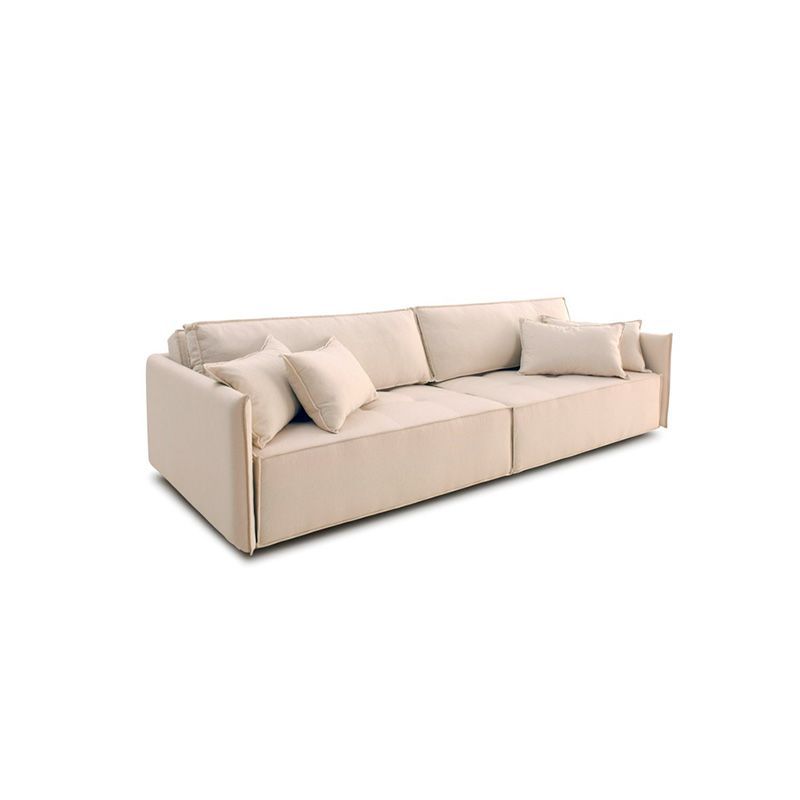 Um retrátil com visual de Living, o sofá tem pequena profundidade fechado com 1,09m, com perfeita ergonomia para essa função e grande aberto com 1,40m de espaço interno, sendo assim perfeito para o ambiente de Home e ainda pode ser usado como cama. Seus braços finosom 8 cm garantem total aproveitamento dos assentos.