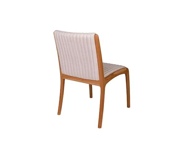 Aliando ergonomia e conforto a um desenho elegante e discreto, a cadeira traz leveza através dos seus delicados pés e travessas de formas orgânicas. Ao mesmo tempo, tem presença marcante com o assento e encosto estofados, cujas costuras formam gomos contínuos