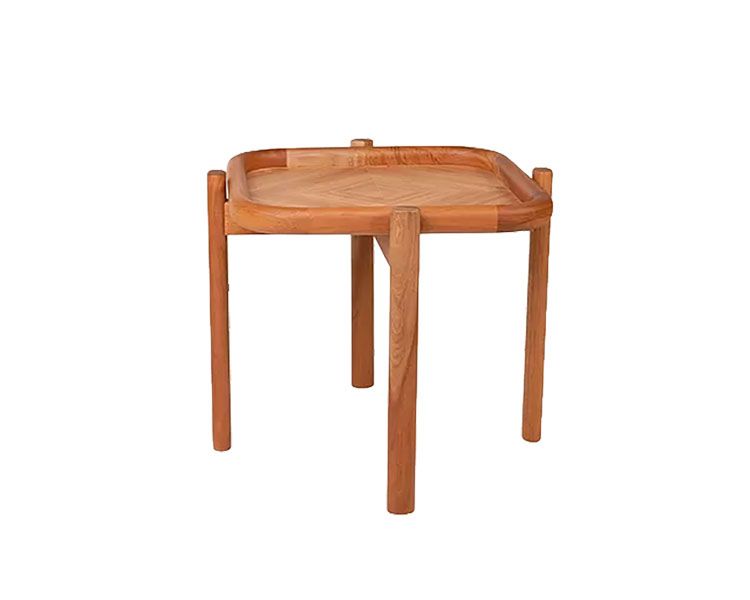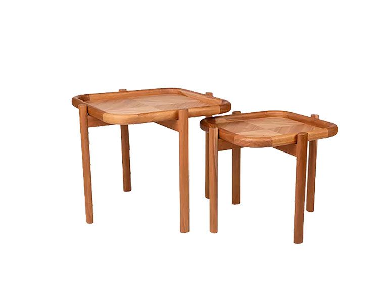 Pensadas para servir como apoio prático e funcional, possuem os pés torneados e bordas arredondadas, agregando delicadeza à peça. O destaque fica para seu tampo diferenciado, trabalhado com a técnica de marchetaria