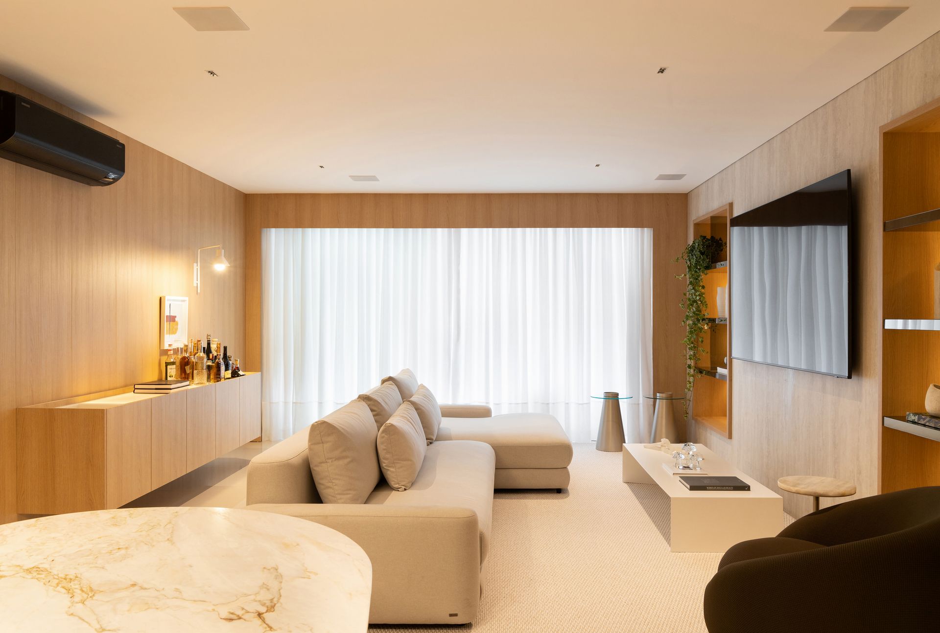 No conjunto, o apartamento não apenas reflete a busca por um lar acolhedor, mas também a relação emocional dos moradores com cada detalhe. Para além da estética, as escolhas dialogam com as experiências e a vivência do casal, que encontra em seu espaço uma tradução fiel de seu estilo de vida: um local onde sofisticação, versatilidade e conforto coexistem em harmonia.