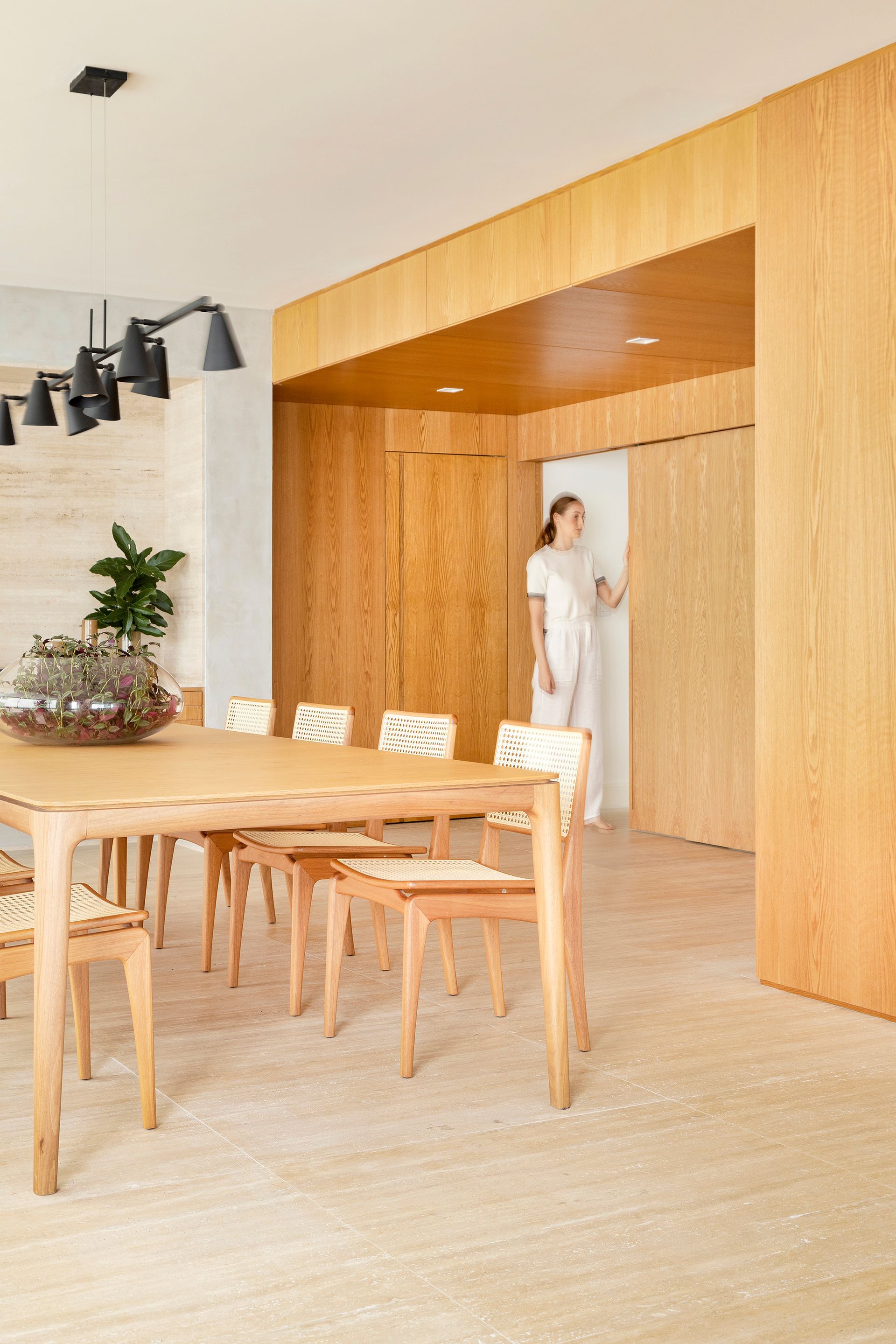 O projeto abrangeu uma área de 160m². Embora o apartamento inteiro seja substancialmente maior, a repaginação contemplou os espaços que mais precisavam ser transformados para que se alinhassem às novas necessidades da família.