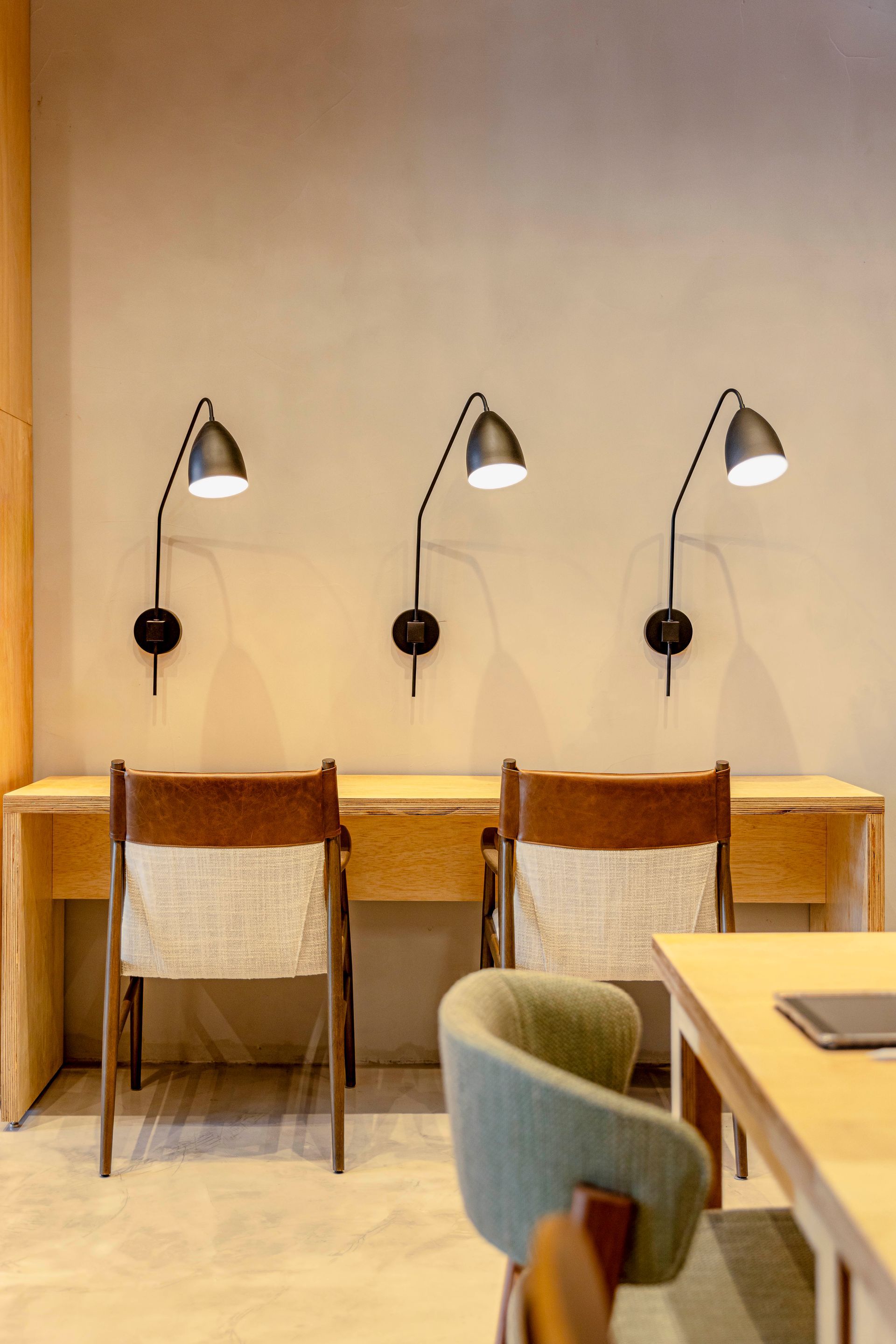 Fly, Elbow e a Merlot, do Studio Mooringa, trazendo variações de escala e perfil sem quebrar a unidade do espaço.